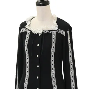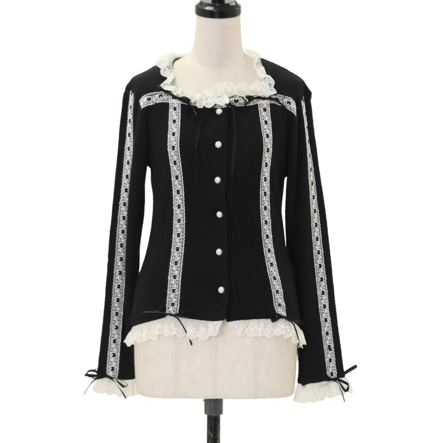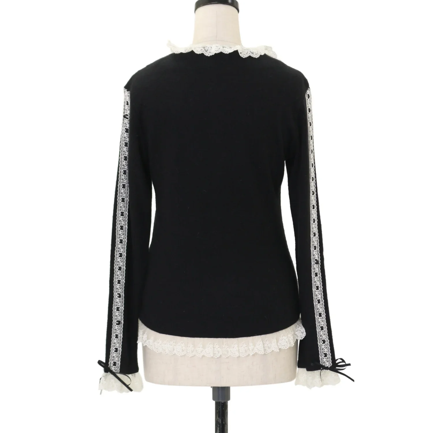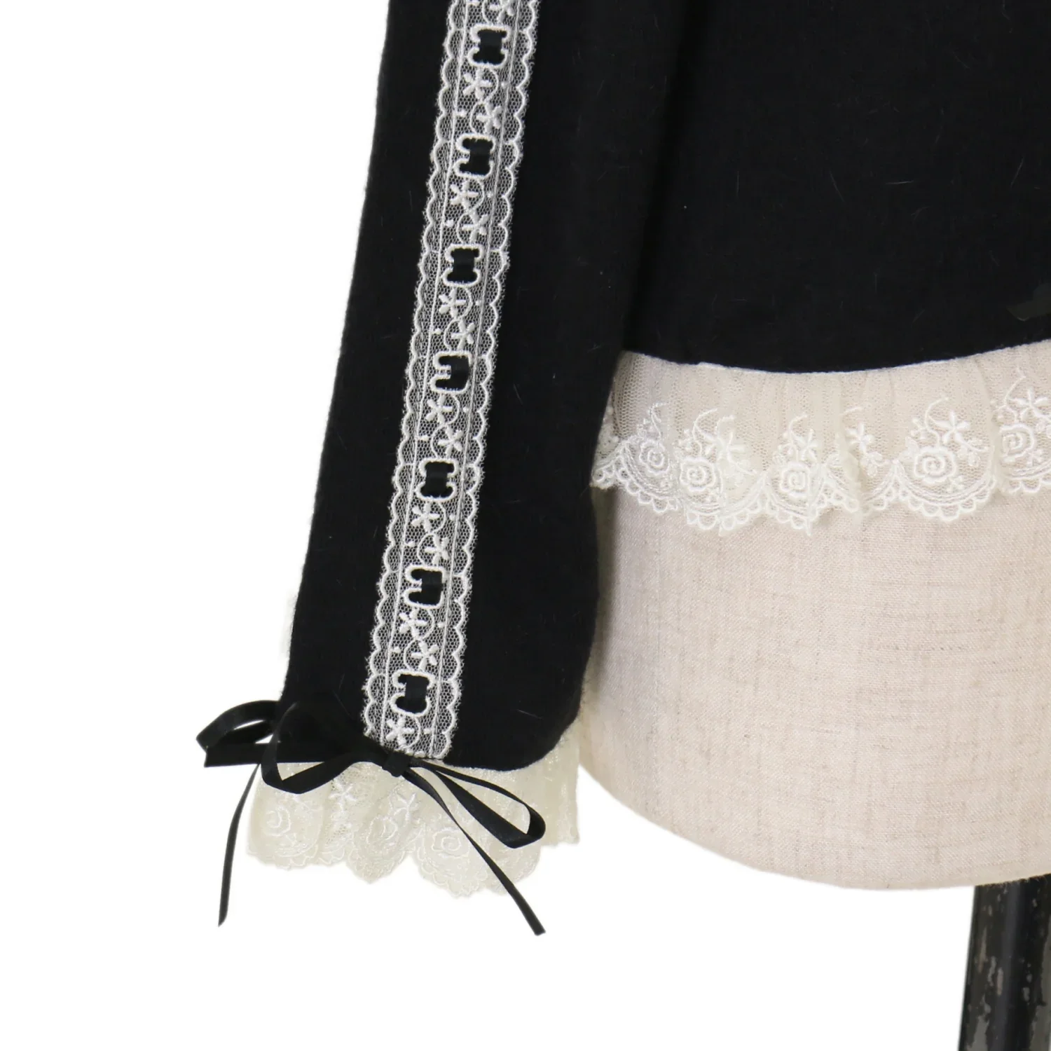 [Material] Wool blend knit (soft half fraise), tulle lace, satin ribbon, domed pearl buttons [Official colorways] - Black x offwhite lace x black ribbon - Offwhite x offwhite lace x offwhite ribbon