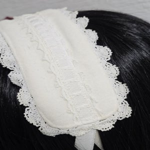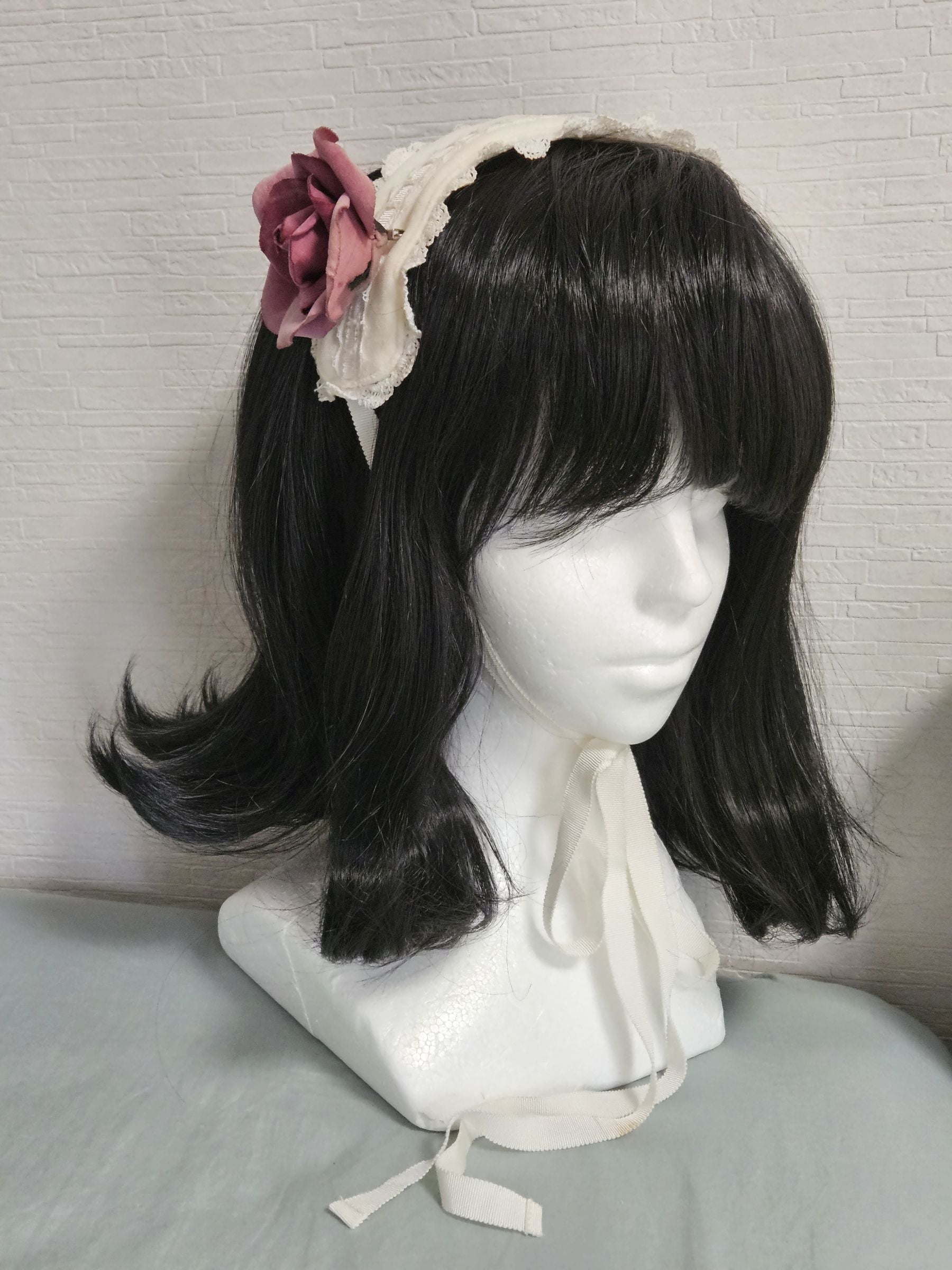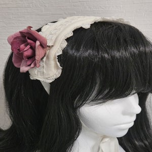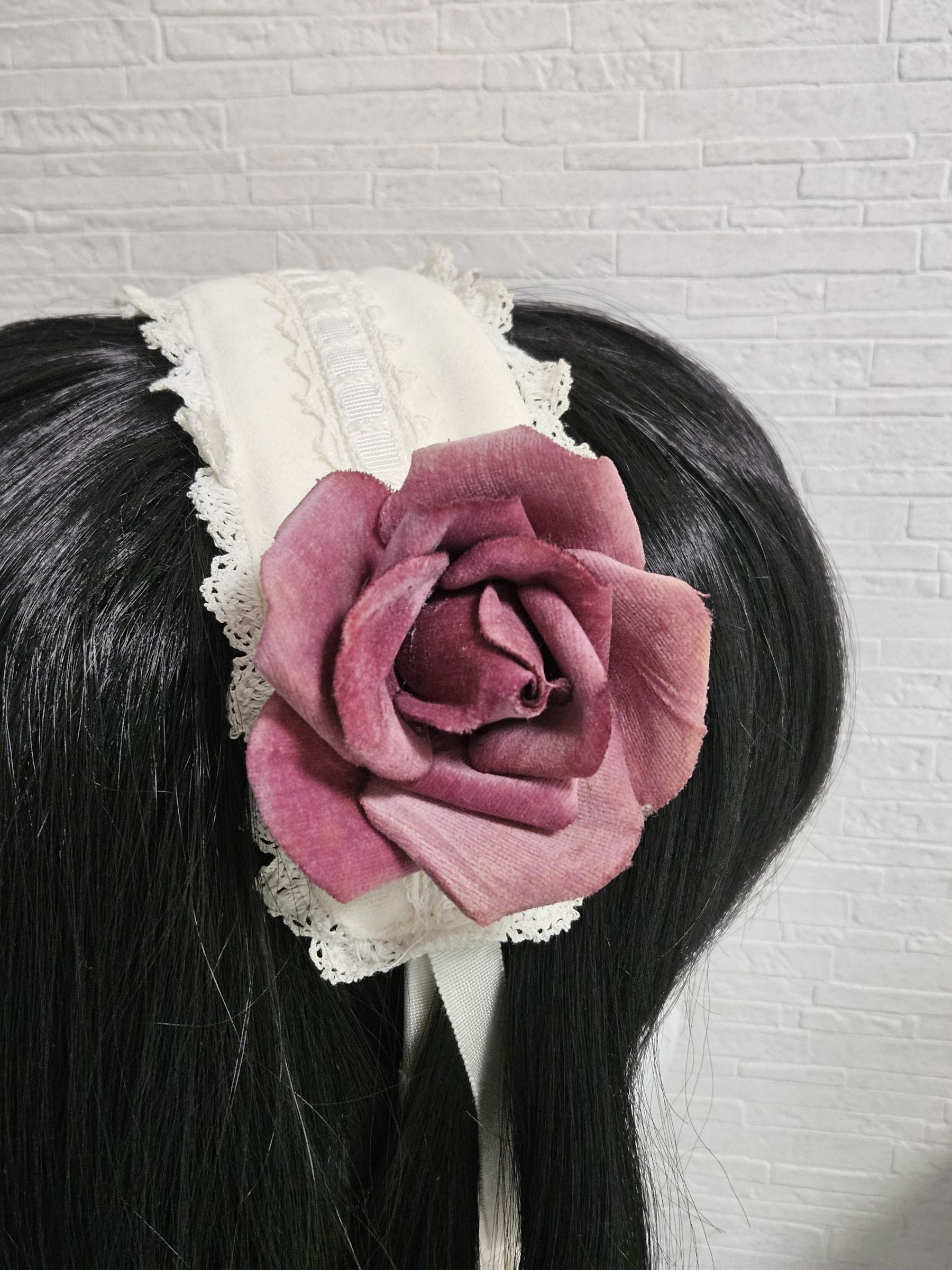 fabric : velveteen, torchon lace, grosgrain ribbon, rose corsage style : detachable rose corsage