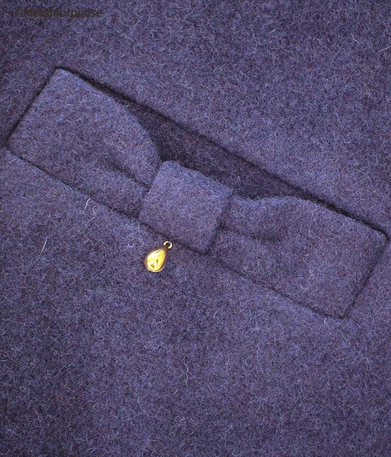 wool mossa (85% wool, 5% polyester, 5% acrylic, 5% nylon) for Black color, wool mossa (90% wool, 10% nylon) for Off White color, recycled wool (75% wool, 15% polyester, 5% acrylic, 5% nylon) for Green and Purple color, lurex torchon lace, lurex piping, star button, plated button, drop charm