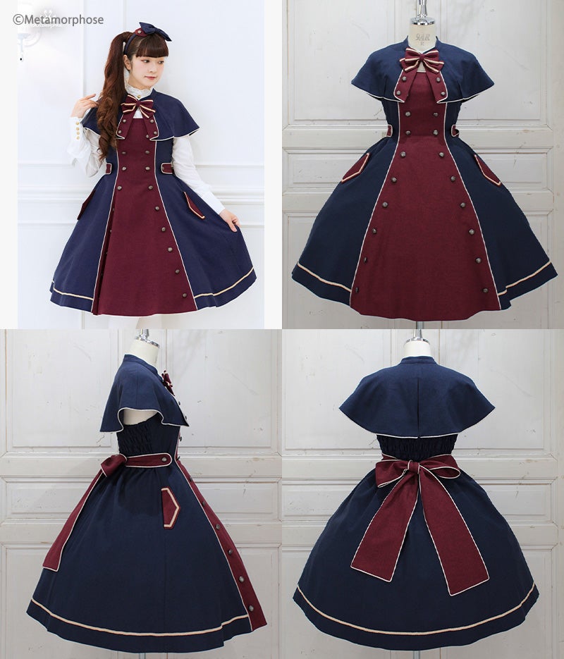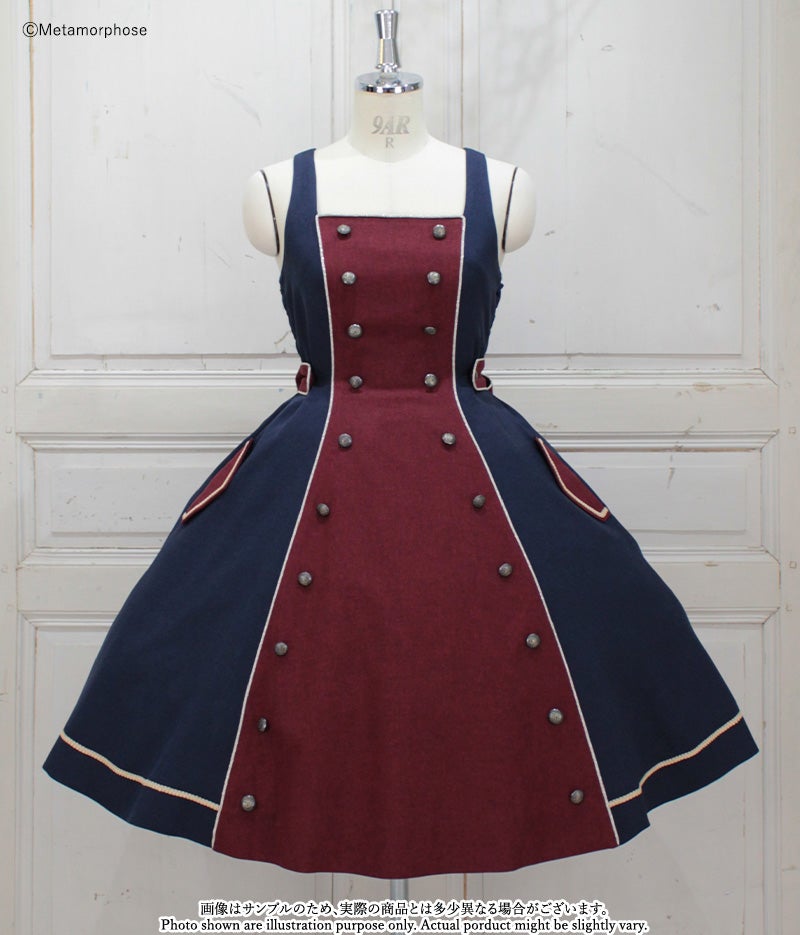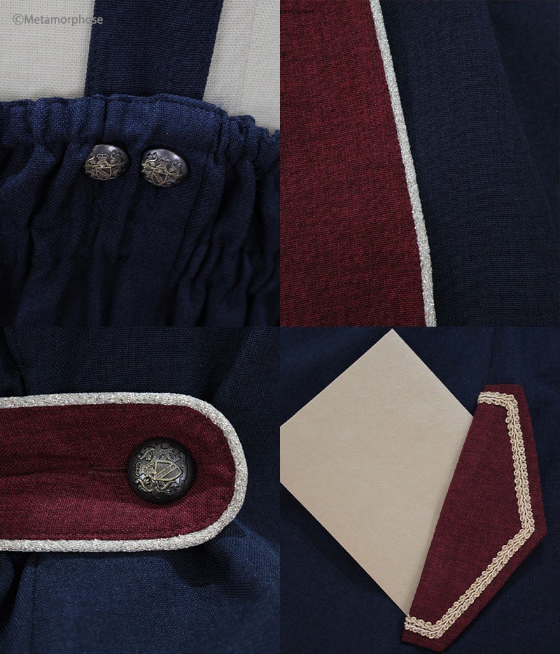 - Navy/Bordeaux : gold piping/ gold braid/ antique gold button