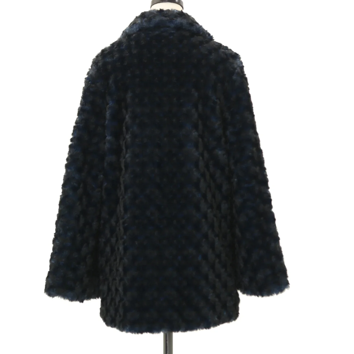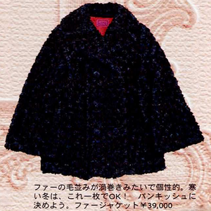 ファーの毛並みが渦巻きみたいで個性的。寒い冬は、これ一枚でOK! パンキッシュに決めよう。
