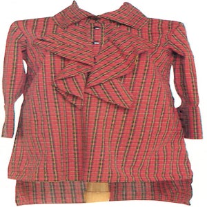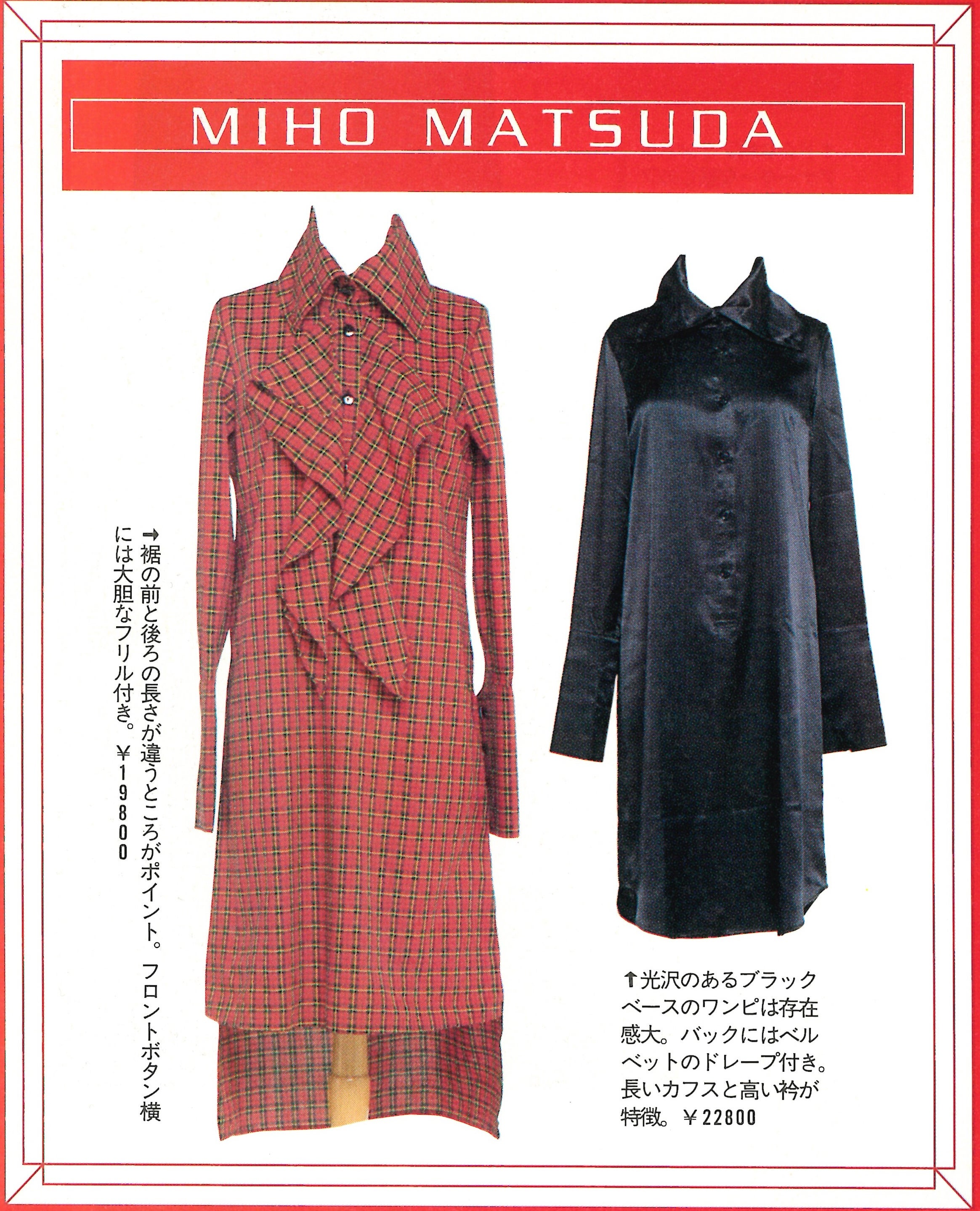 Item description: "→The difference in length between the front and back of the hem is the key point. Next to the front button it has bold frills. ¥19,800"