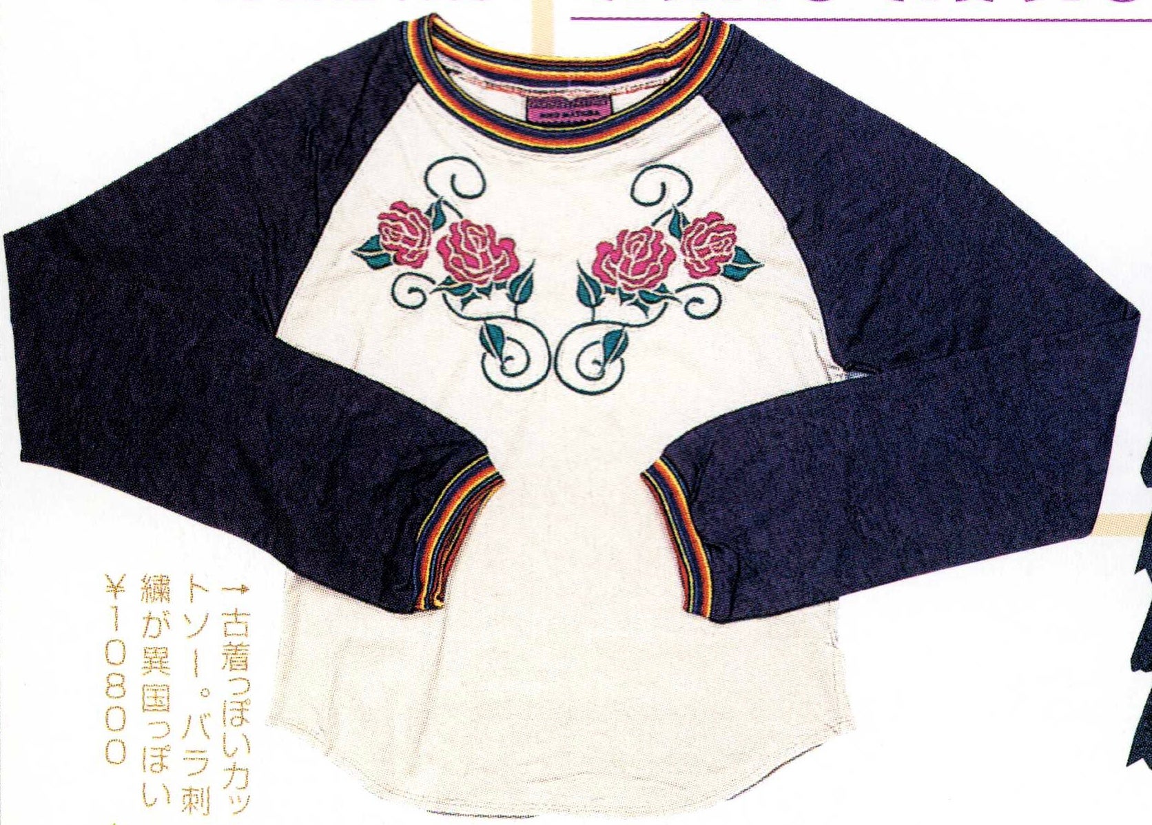 Item description: "→A T-shirt with a vintage look. The rose embroidery gives it an exotic feel. ¥10800"