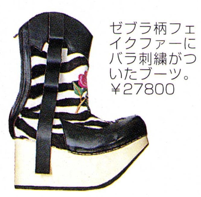 Item description: "Zebra print faux fur boots with embroidered roses. ¥27800"