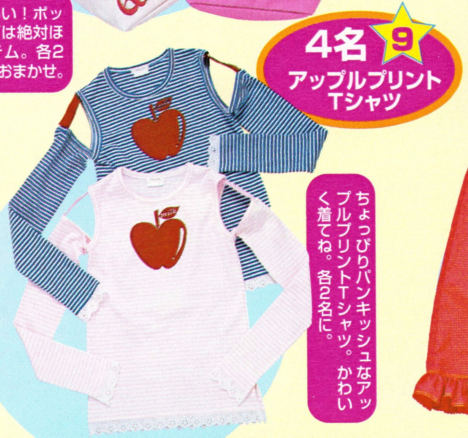 Item description: "Apple print T-shirt. A slightly punkish apple print T-shirt. Look cute wearing it."