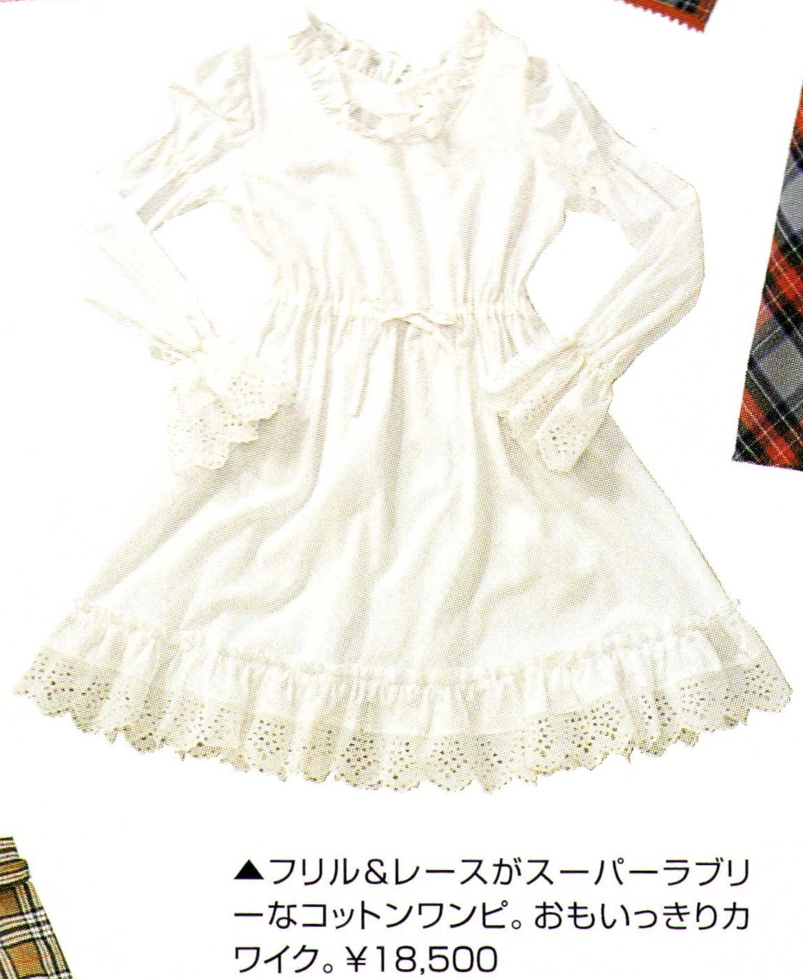 Item description: "A super lovely cotton dress with ruffles and lace. Super cute. ¥18,500"