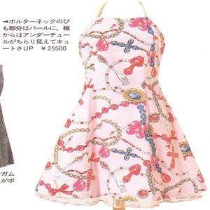 Item description: "→The strings of the halter neck are pearlized. The under tulle peeks out from the hem, making it even cuter. ¥25500"