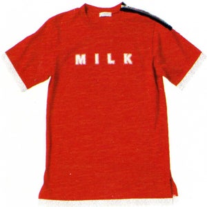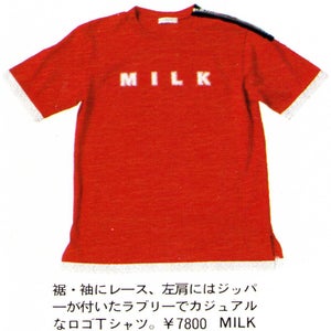Item description: "A lovely and casual logo T-shirt with lace on the hem and sleeves and a zipper on the left shoulder. ¥7800 MILK"
