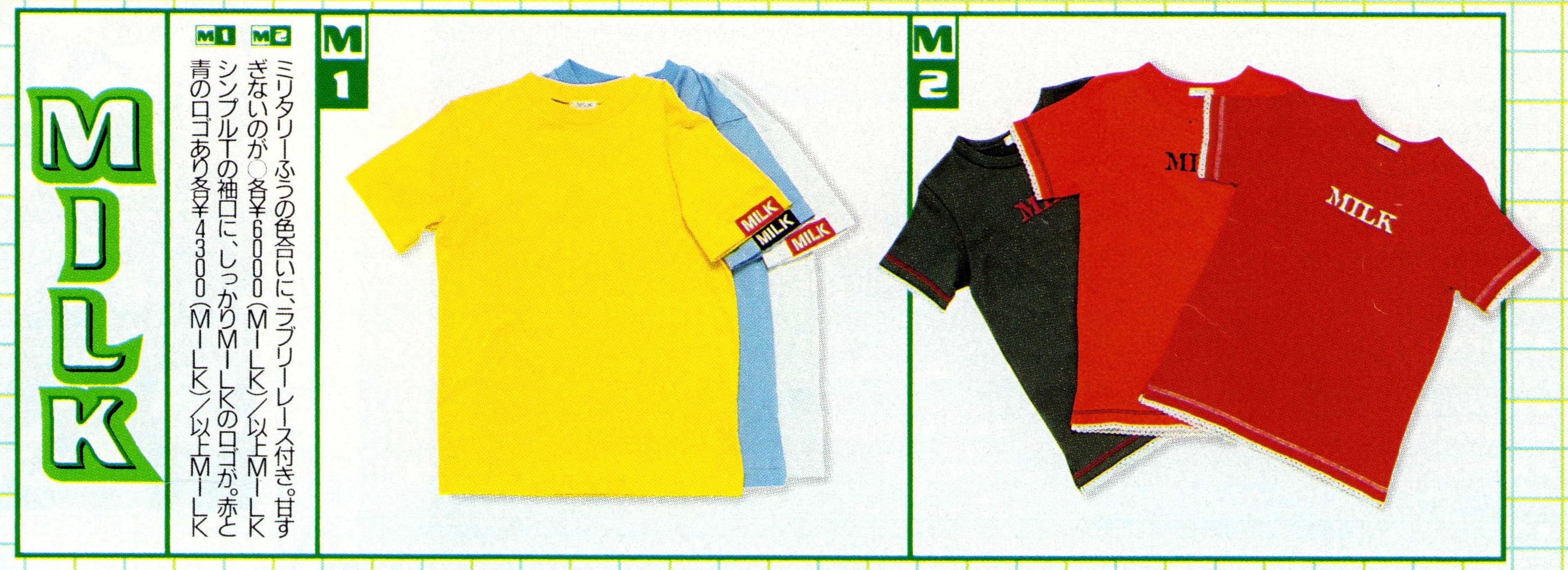 Item description: "Simple T-shirt with MILK logo on the cuffs. Red and blue logos ¥4300 each (MILK)"