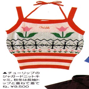 Item description: "Tulip jacquard knit camisole. Layer it with a long-sleeved top in autumn and winter. ¥9,500"