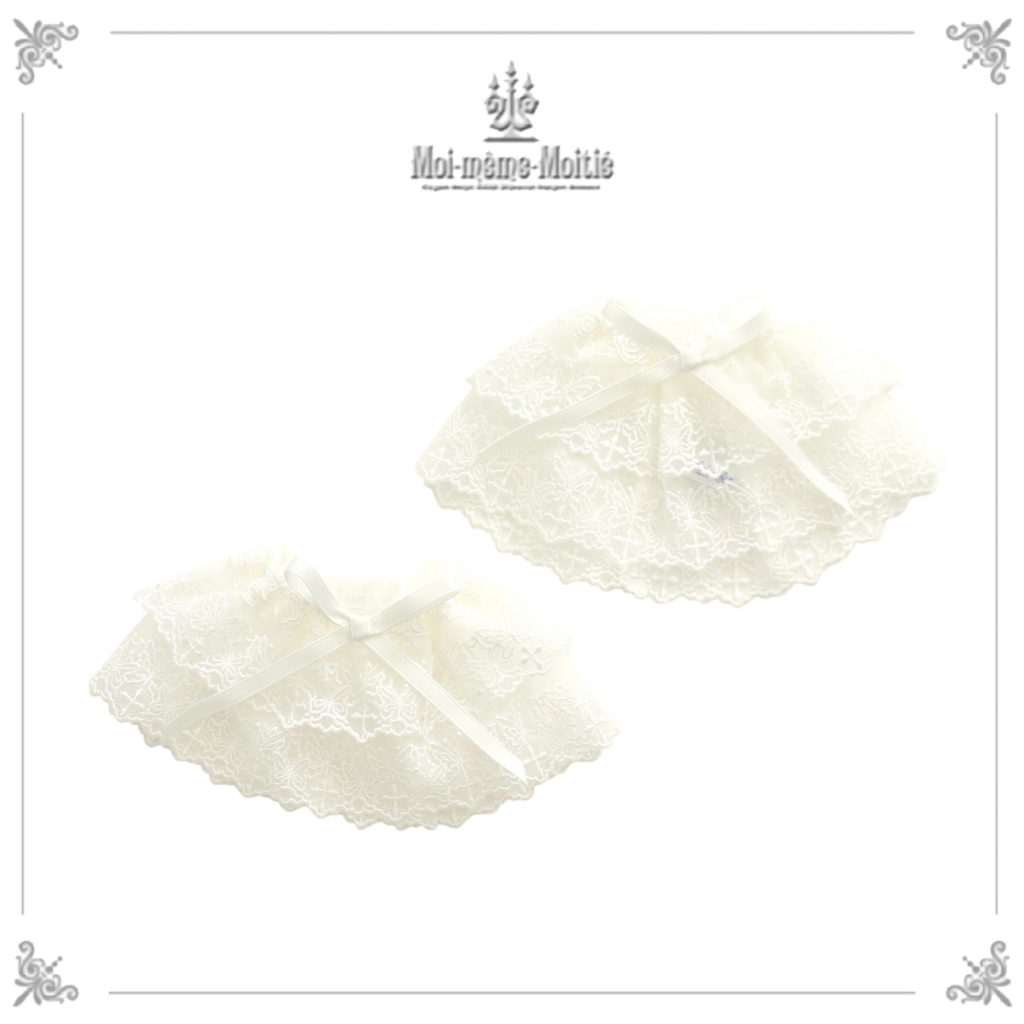 [Brand Notes] Cuffs with two layers of Moi-même-Moitié’s original Butterfly and Cross lace. You can take them off easily because they have elastic bands on the wrist. The decorative ribbons cannot adjust the size.