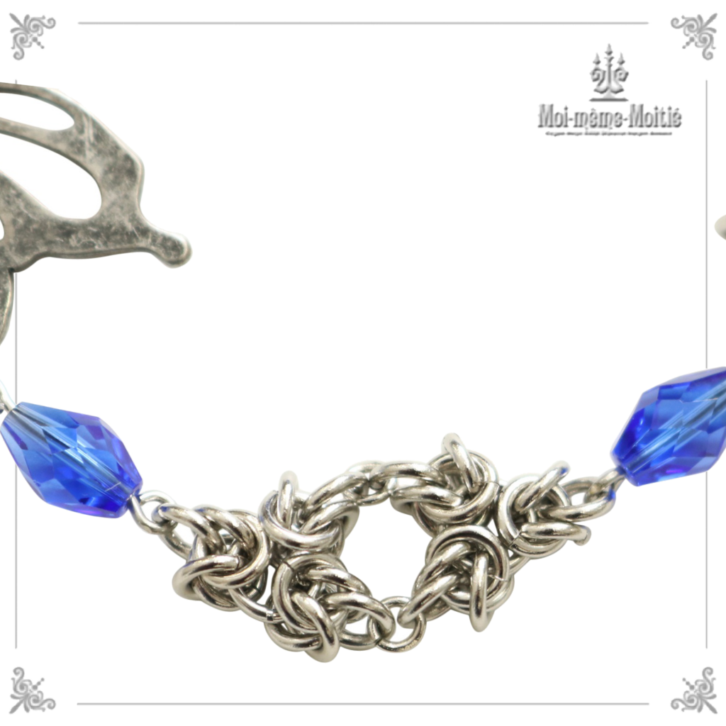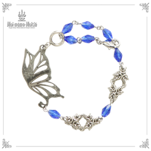 Beads: Glass | Clasp: Brass | Chainmail, Jump Rings (Connecting Hardware): Brass | Butterfly Charm: Brass