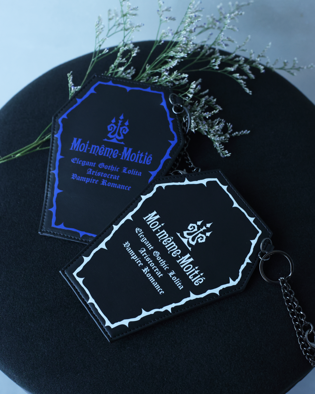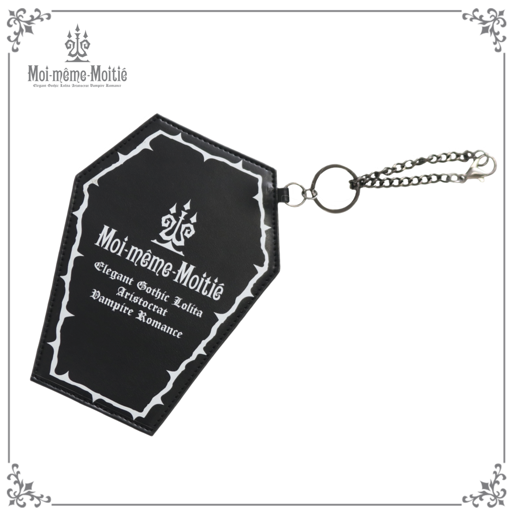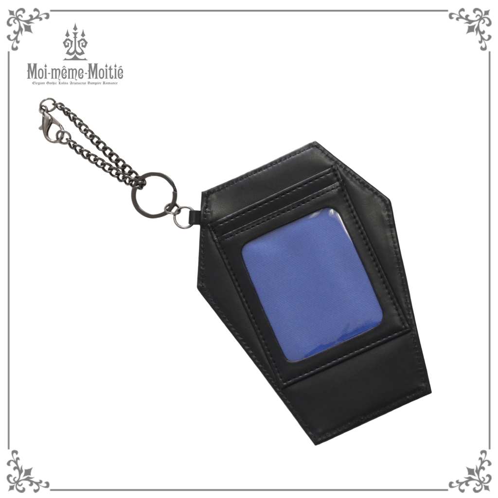 [Brand Notes] A coffin-shaped pass case with a printed logo. It has a keyring and chain on the side, and comes with two card pockets.