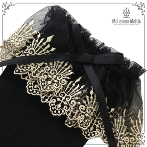 Socks: 70% Cotton, 30% Nylon || Lace: Base fabric: 100% Nylon | Embroidery upper thread: 100% Rayon (Gold and Silver metallic thread: 68% Polyester, 32% Nylon) | Embroidery bobbin thread: 100% Polyester