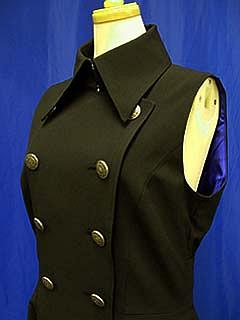 950 g Material: polyester 67%, rayon 32%, polyurethane 1% (backing fabric: polyester 100%). Beautiful long gilet with original logo button and strings on the back.