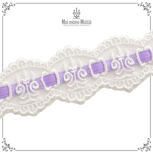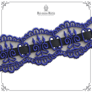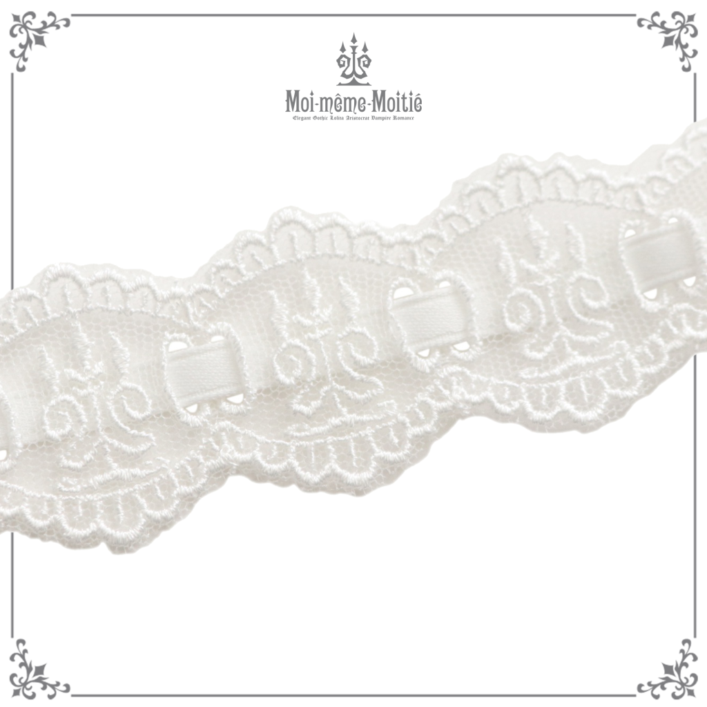 Lace: Base fabric: 100% nylon | Embroidery upper thread: 100% rayon | Embroidery bobbin thread: 100% cotton || Ribbon: 100% Polyester | Charm: Brass