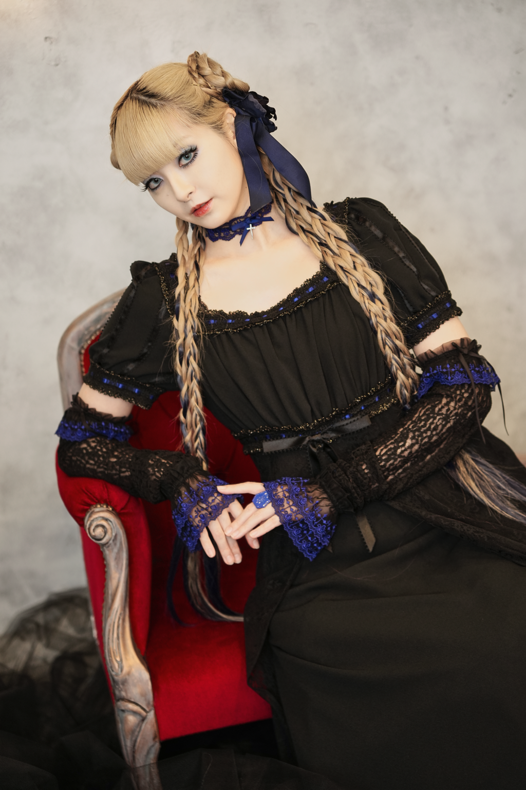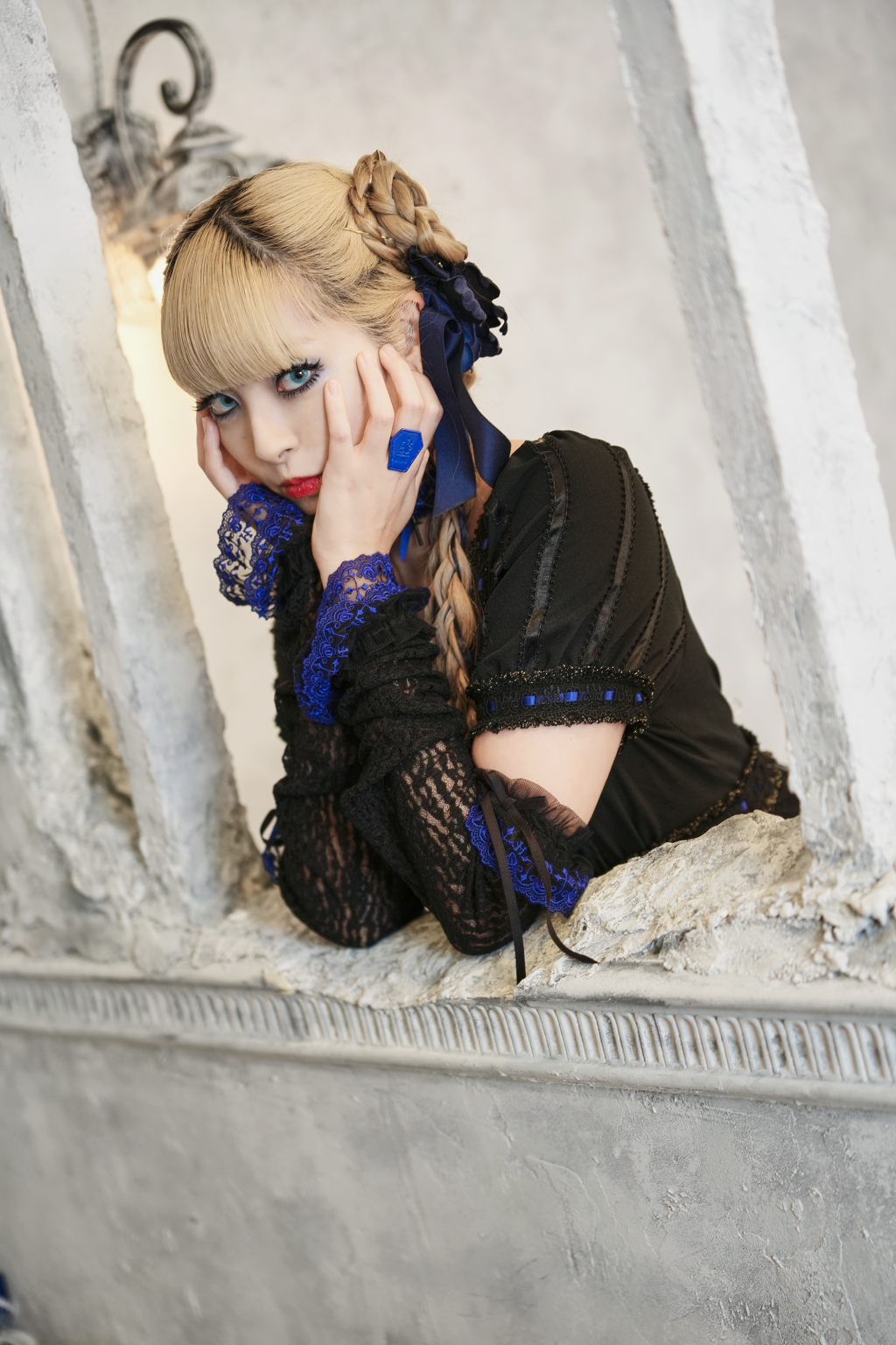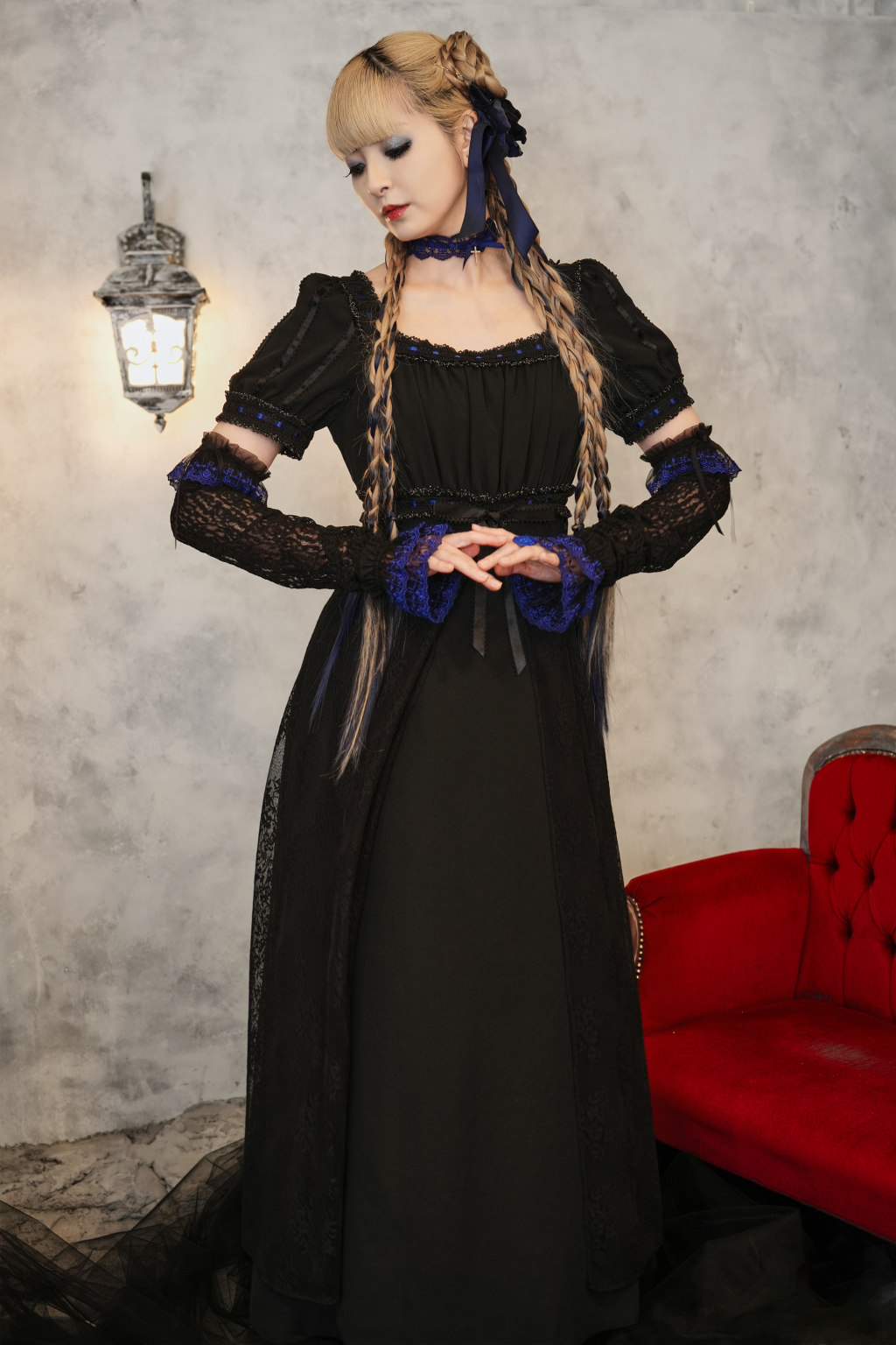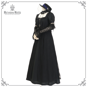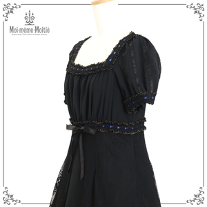 [Brand Notes] The fabric features a tulle material adorned with dots and floral patterns. The plain fabric part is a crepe weave. The contrasting colors in the ladder lace ribbon makes for a striking dress. In cold seasons, you can layer it with a blouse or a lace cutsew, allowing for all year round wear.※ Due to the overlapping fabric at the waist, the zipper inevitably becomes stiff. This is not a defective item. ※ The lace fabric, lace, and ribbon are made in Japan.