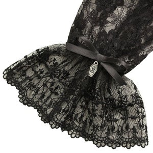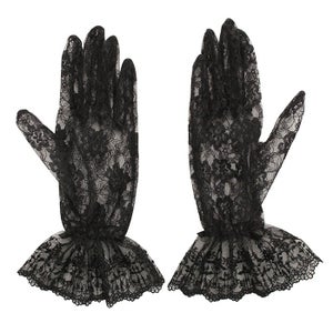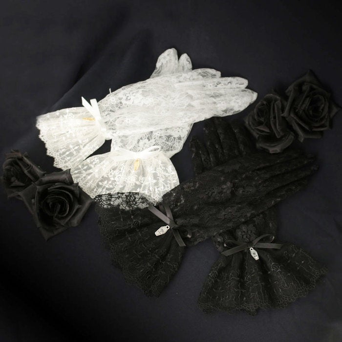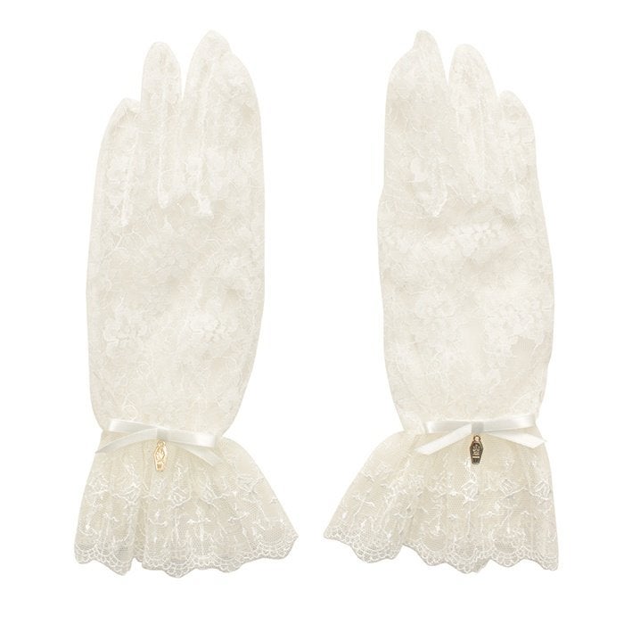 Gloves: 100% Nylon Lace: Base fabric 100% nylon, embroidery upper thread 100% rayon, embroidery bobbin thread 100% cotton