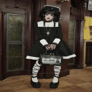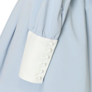 [Brand Notes] The fabric features a nice texture like natural materials and easy to use due to synthetic fiber. Detachable collar with buttons. A pocket at the right side of the skirt. The lining is anti-static finished.