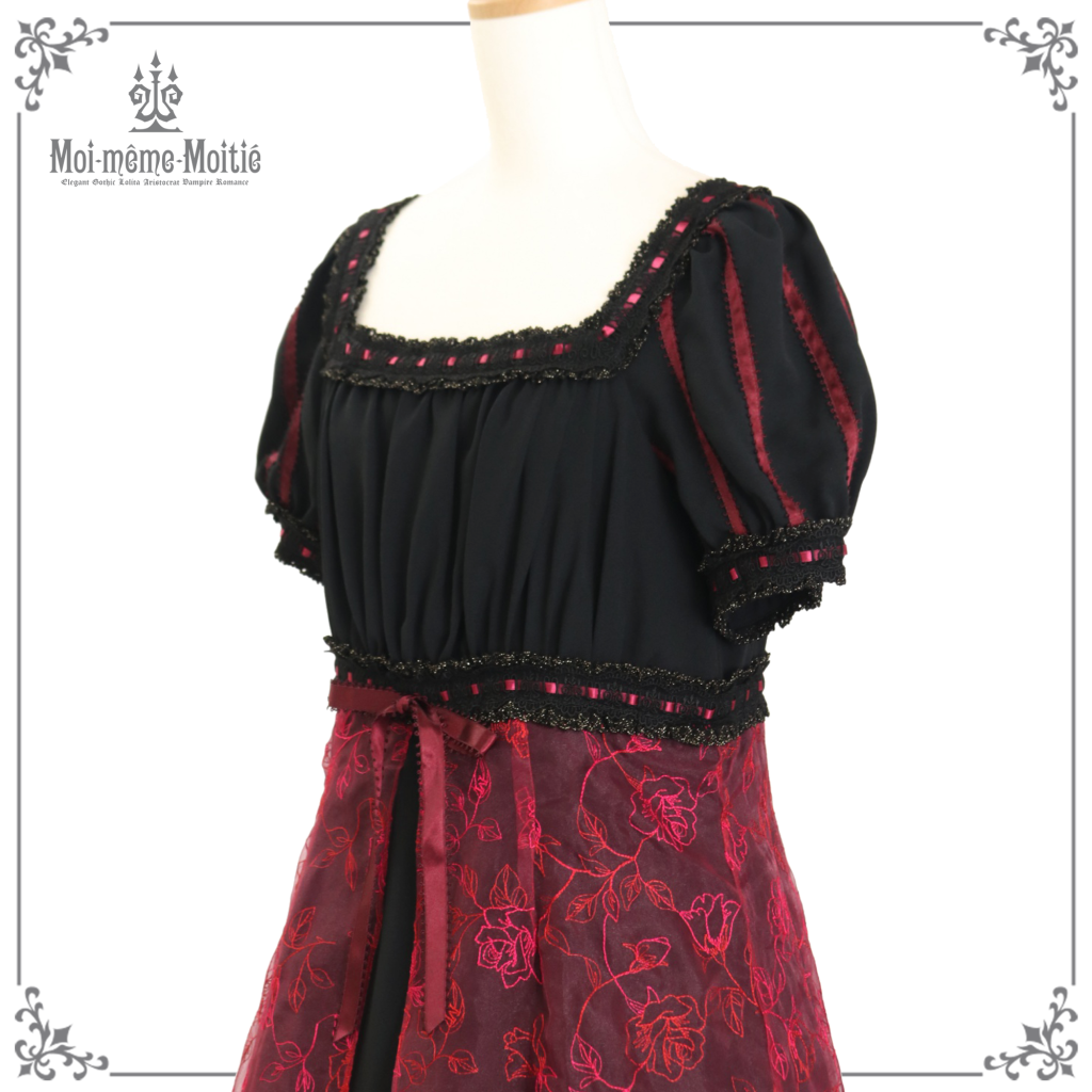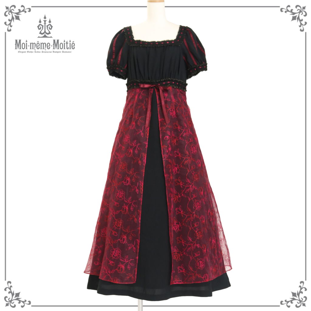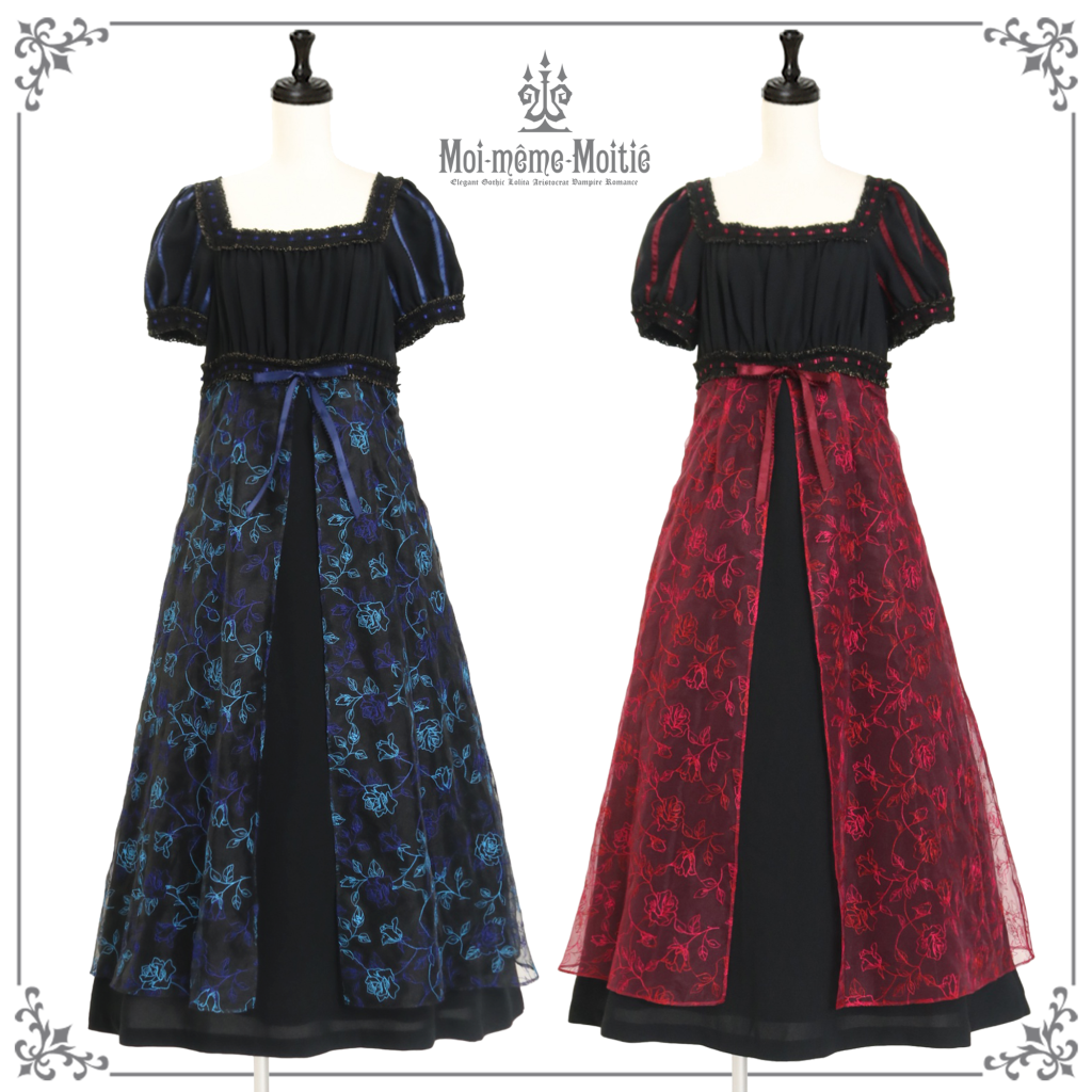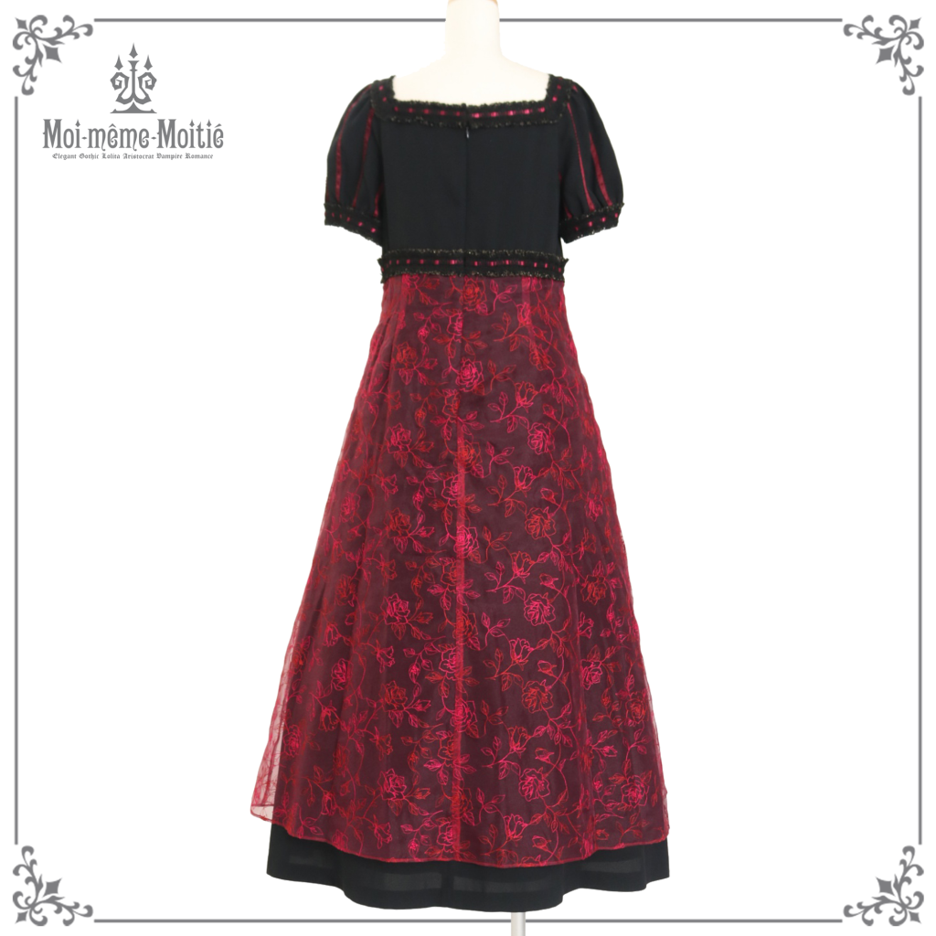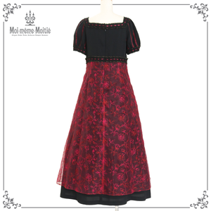 [Brand Notes] The organza fabric features an original rose pattern made with two colors of embroidery thread. The plain fabric part is a crepe weave. The contrasting colors in the ladder lace ribbon makes for a striking dress. In cold seasons, you can layer it with a blouse or a lace cutsew, allowing for all year round wear.※ Due to the overlapping fabric at the waist, the zipper inevitably becomes stiff. This is not a defective item. ※ The organza part may melt when using a steam iron. ※ The embroidered fabric, lace, and ribbon are made in Japan.