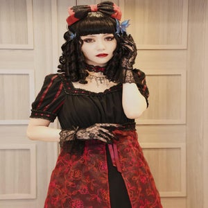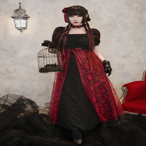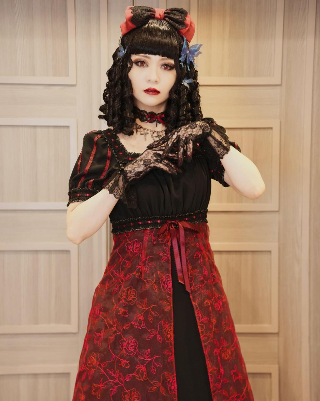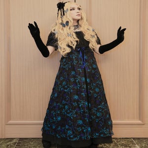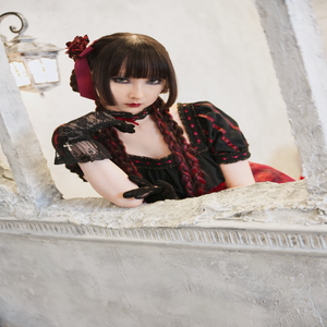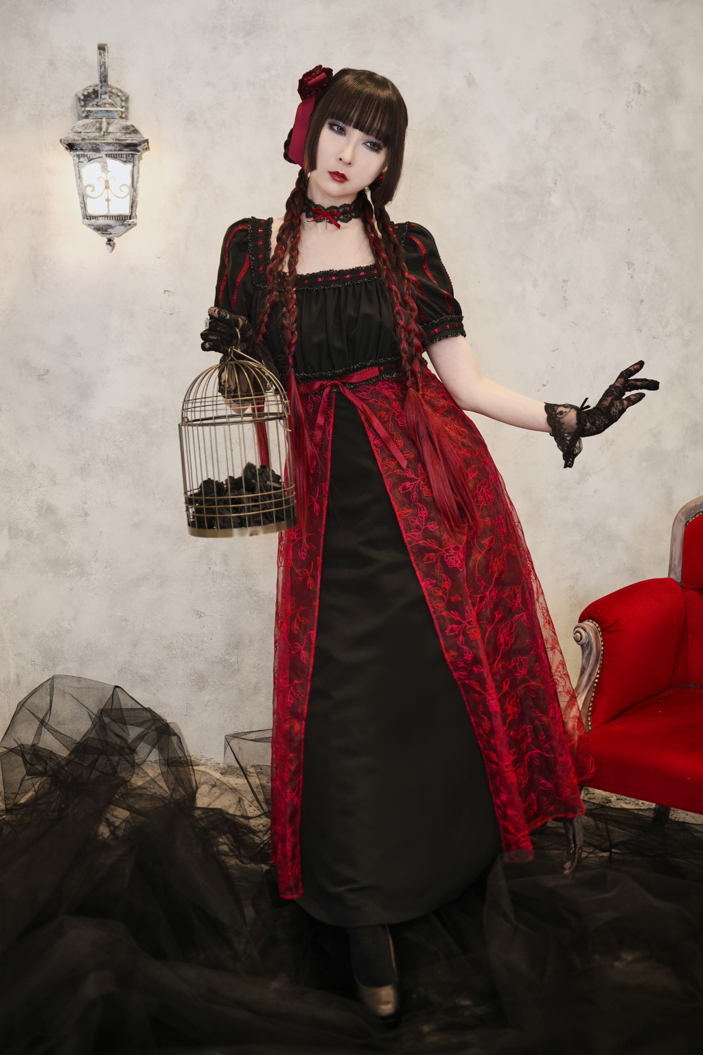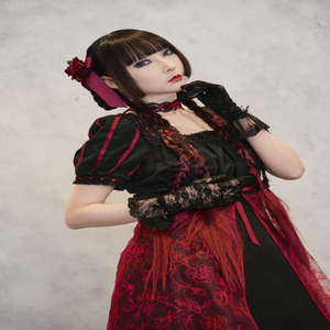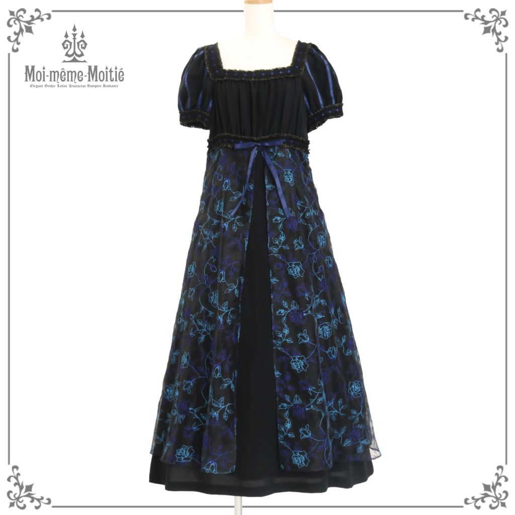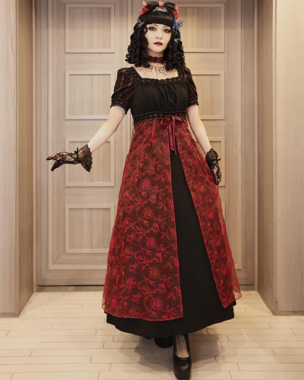 [Brand Notes] The organza fabric features an original rose pattern made with two colors of embroidery thread. The plain fabric part is a crepe weave. The contrasting colors in the ladder lace ribbon makes for a striking dress. In cold seasons, you can layer it with a blouse or a lace cutsew, allowing for all year round wear.※ Due to the overlapping fabric at the waist, the zipper inevitably becomes stiff. This is not a defective item. ※ The organza part may melt when using a steam iron. ※ The embroidered fabric, lace, and ribbon are made in Japan.