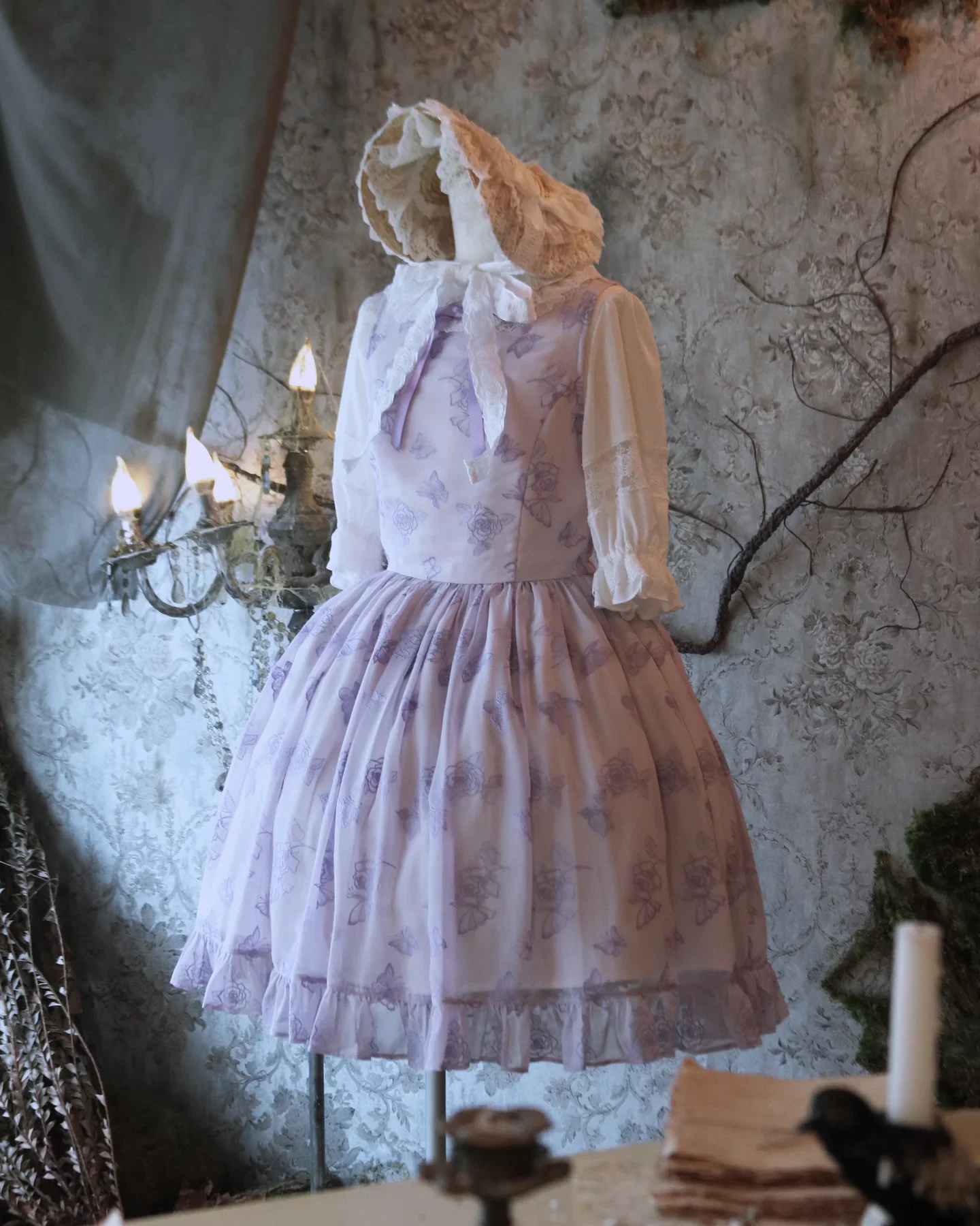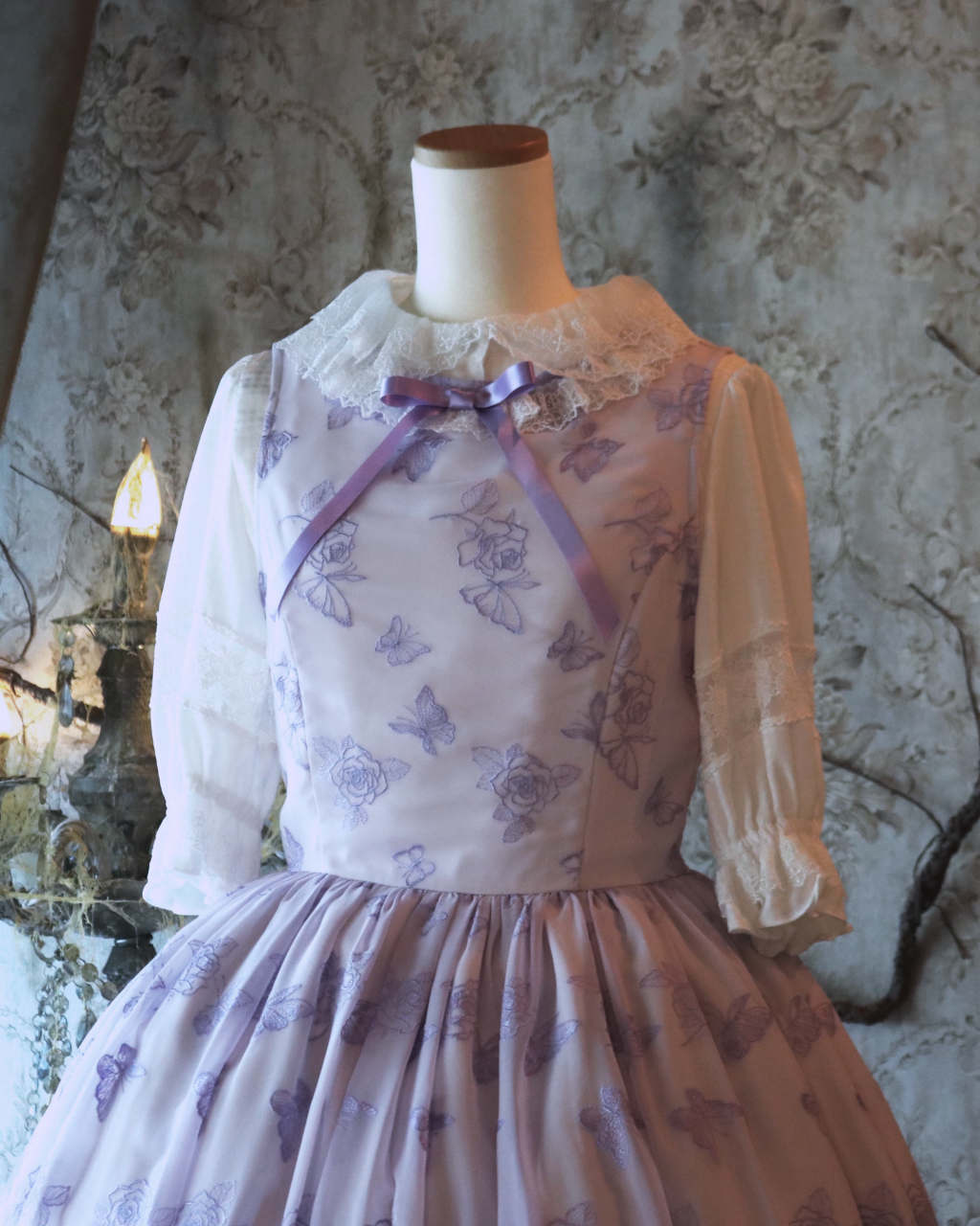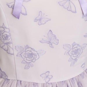 A lightweight chiffon fabric embroidered with roses and butterflies as if they were dancing.