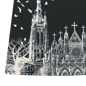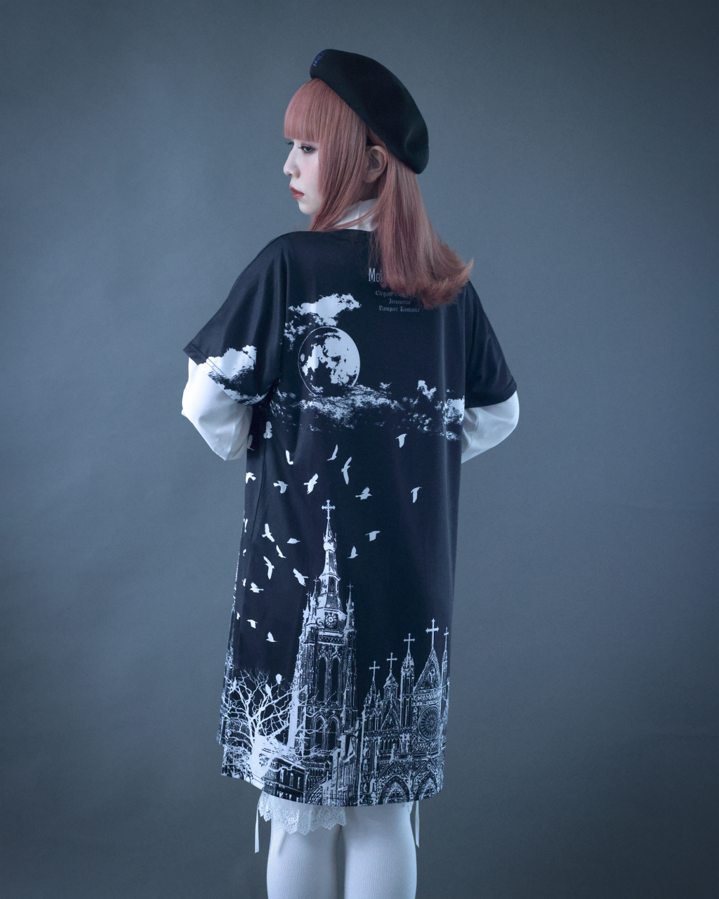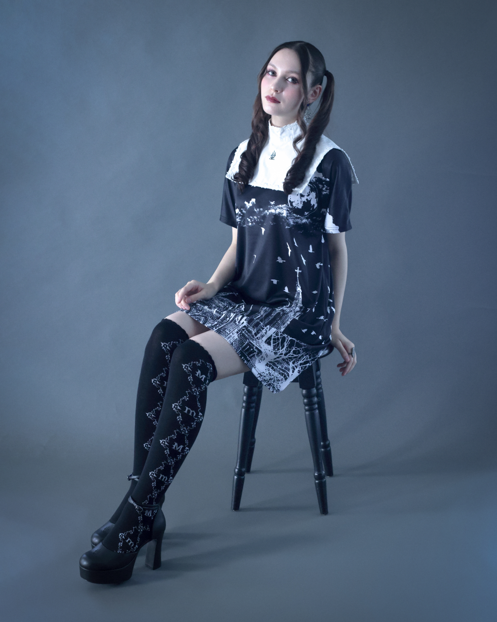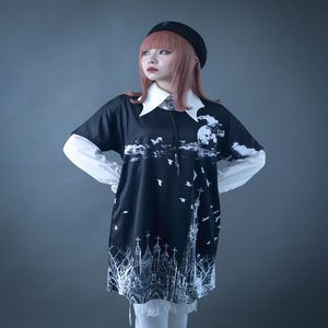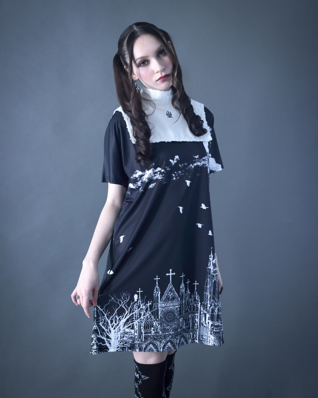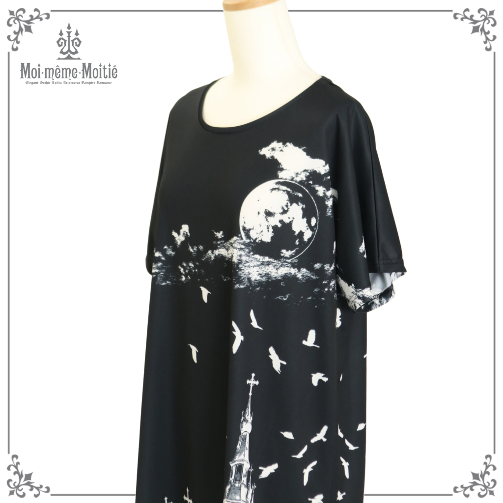 [Brand Notes] An A-line dress with the Silent Moon print using sublimation print technique.Made with a smooth, slightly glossy fabric, it’s comfortable and cool to wear.