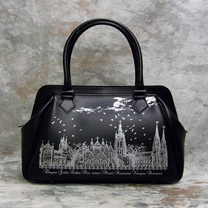 [Measurements] Height: 27.5 cm Width: 24 ~ 31 cm Thickness: 11 cm Handle length: 53.5 cm [Material] Leather [Features] Charm: original coffin logo One zipper pocket, one for cellphone