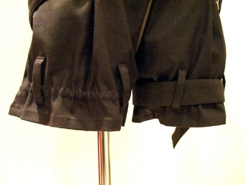 ハトメがアクセントの二本のベルトは取り外し可能。裾部分のベルトの下にゴムが入っており、裾をぎゅっと絞った作りになってます。