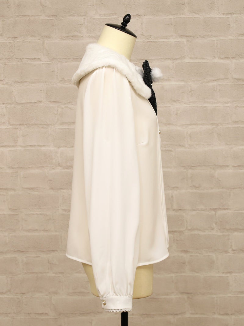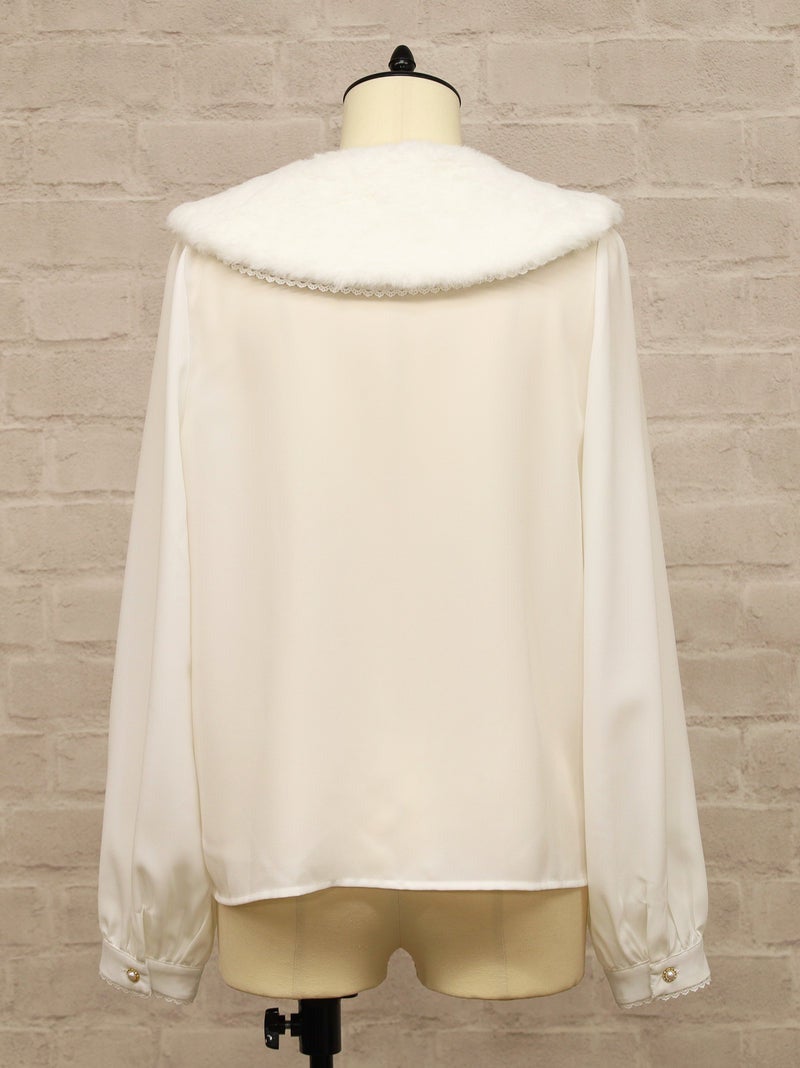 ふわふわのファーティペットがついたブラウスです。