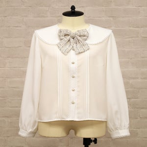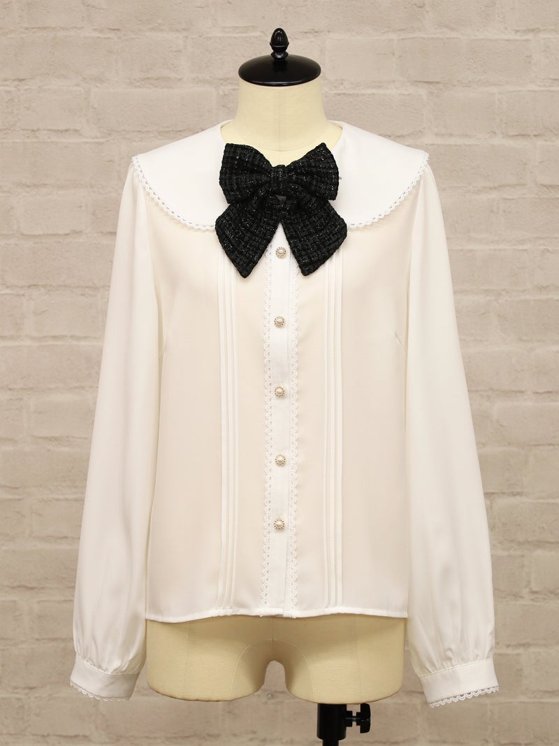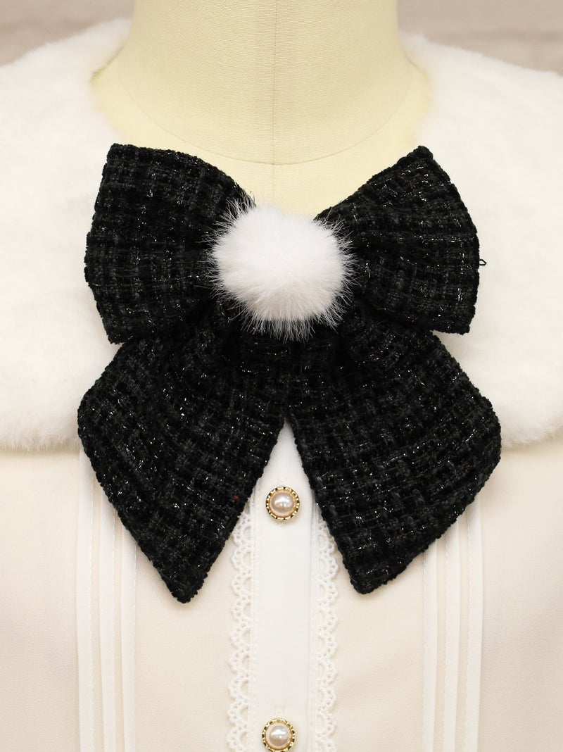 胸元のリボンブローチは同日発売のツイードスカートと同じ生地を使用しています。