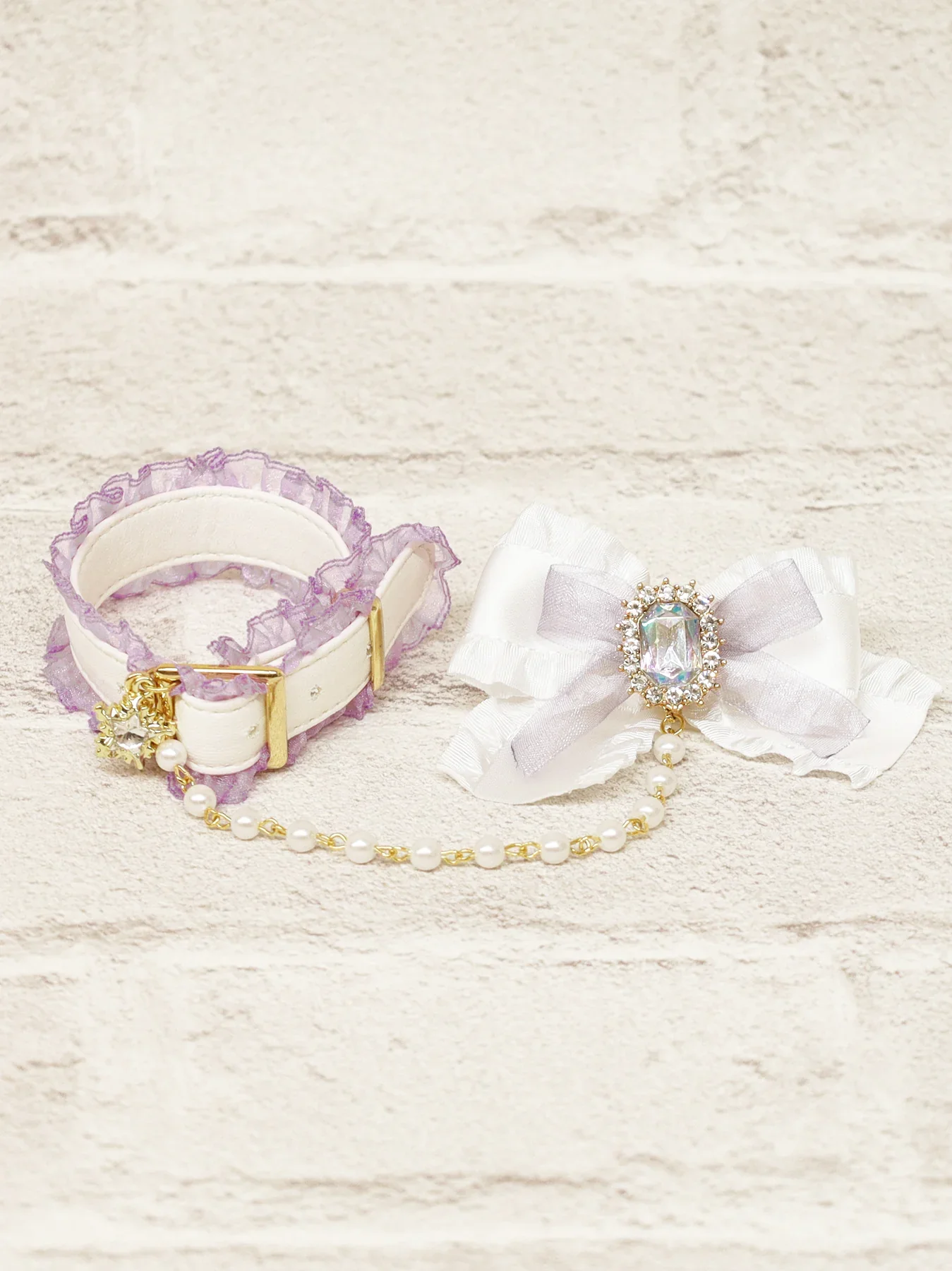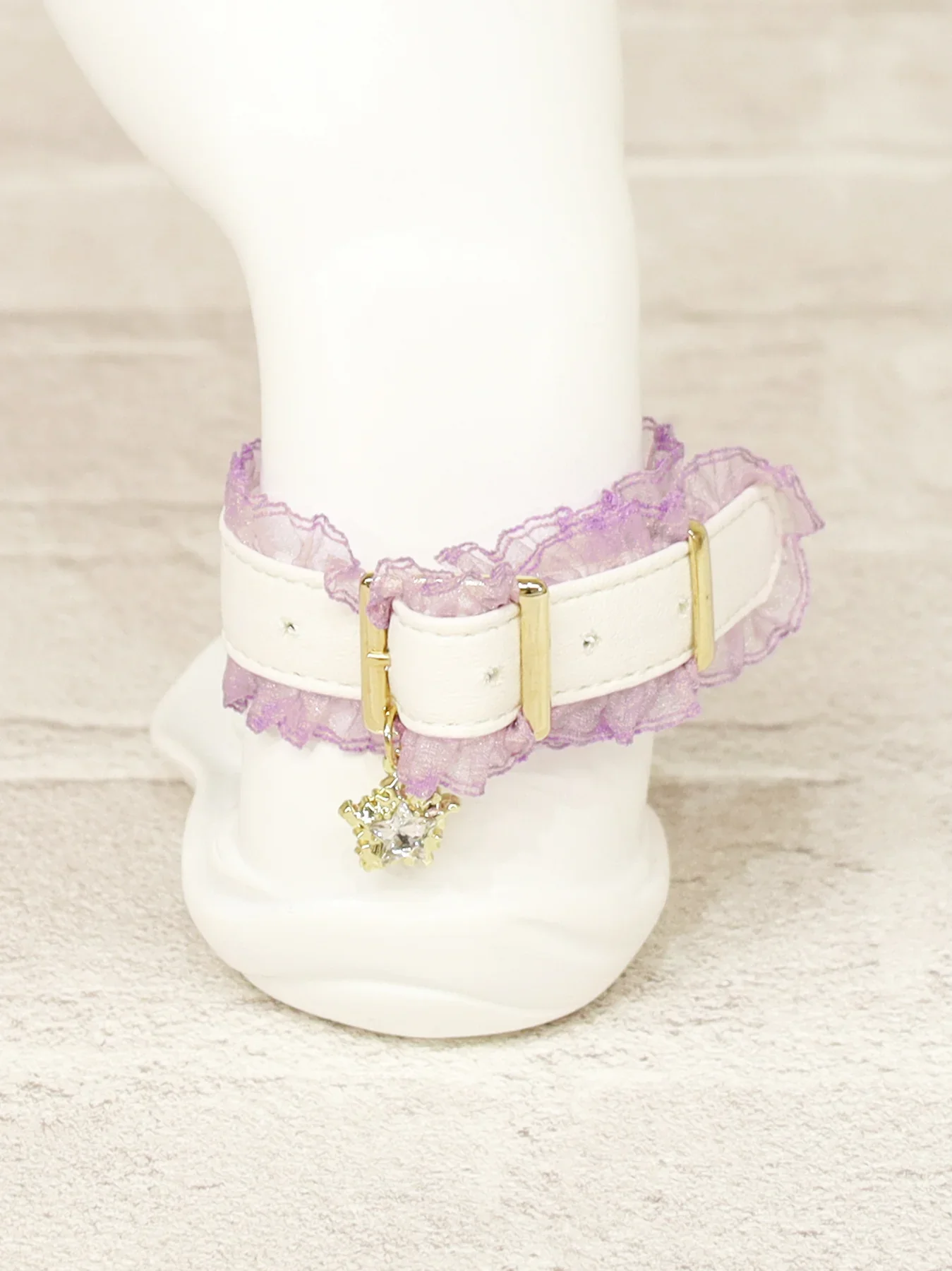 The bracelet is adorned with organza ruffles, and the buckle features a star charm.
