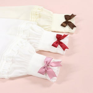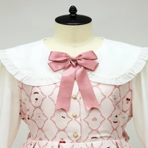 胸元と袖口にはリボンブローチが付いています。同じSweet Whipシリーズのベレー帽、リボンクリップとの同系色とのコーディネートがおすすめです。同日販売のクロスパンプスを合わせるとロリータ風スタイリングがお楽しみいただけます。2025AWcollection