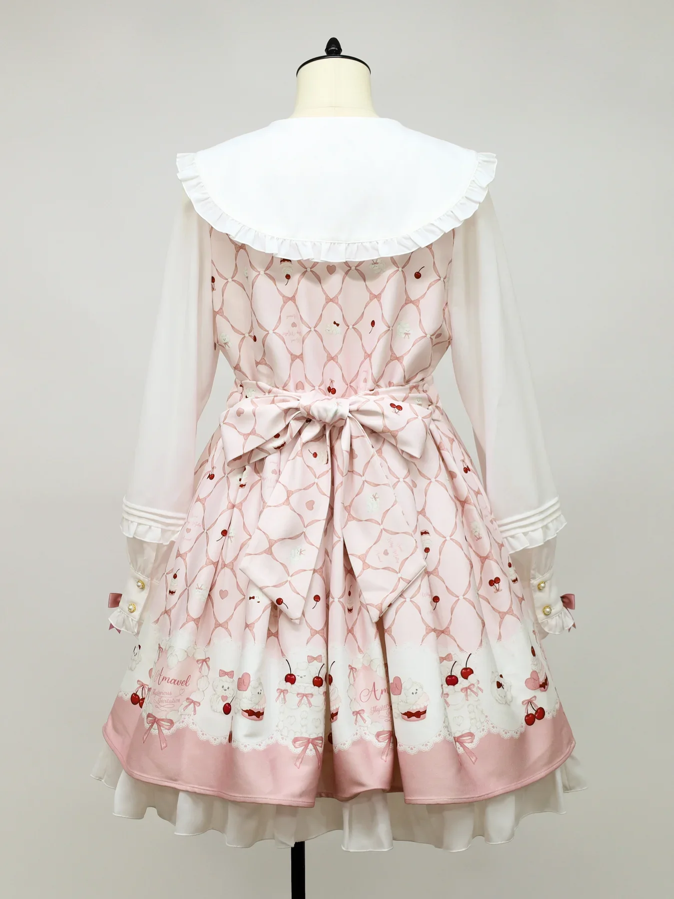 [Original brand comment] ホイップで出来た可愛らしいワンちゃんとケーキ、クッキーやカップケーキがレースペーパーに並べられた、不思議なお茶会をイメージしたAmavelオリジナルのプリントワンピースです。