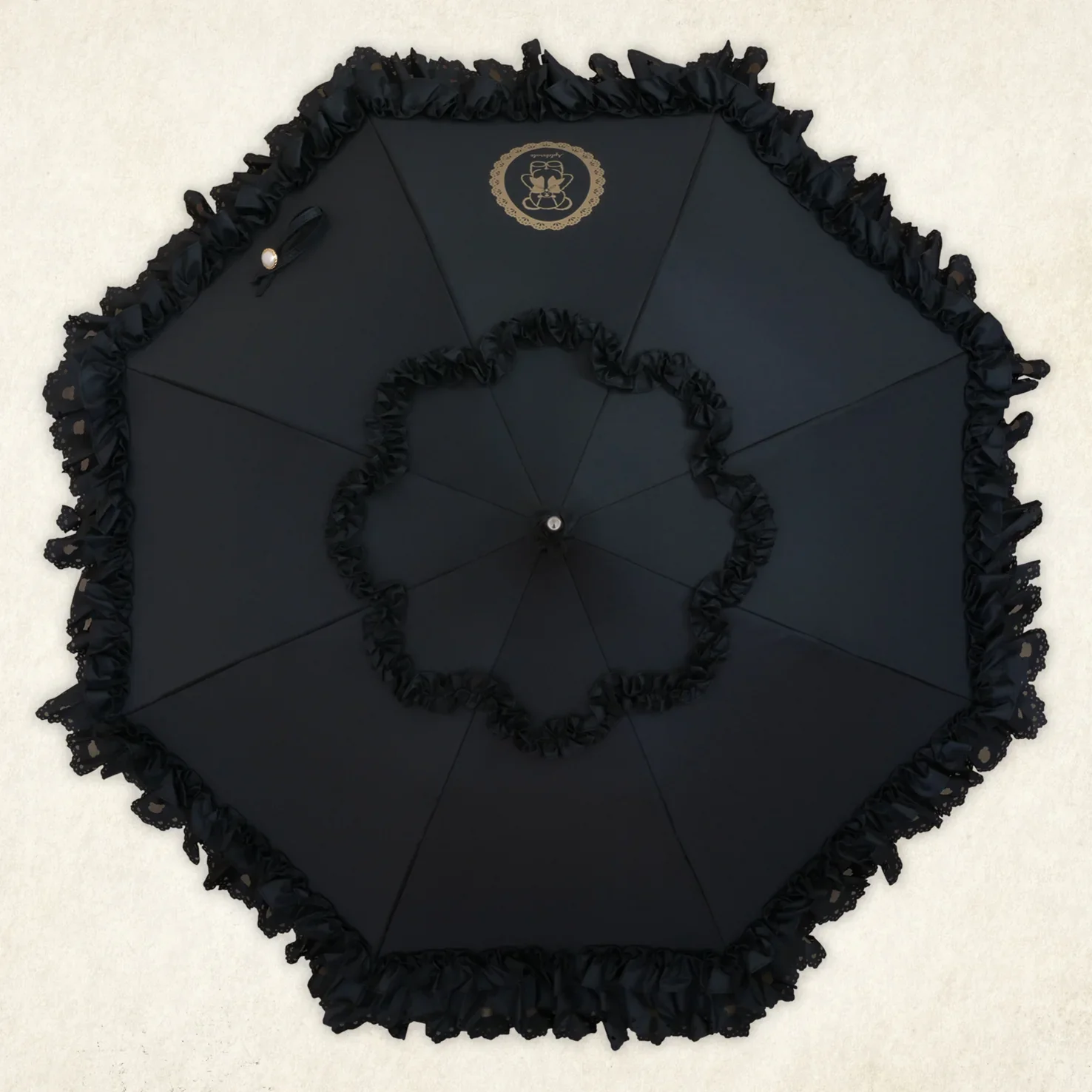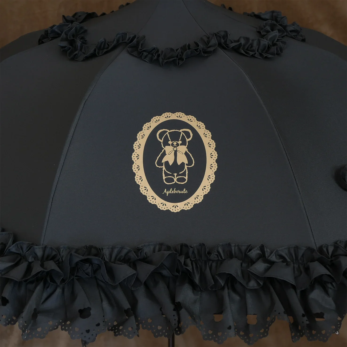Chalmiere × Apleberute コラボ / クマさんフリルパゴタ傘 - パゴダ 雨傘 UVカット 長傘 フリル