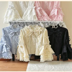 原创正品春秋大码Lolita衬衫大姬袖内搭doll感优雅华丽女胖mm衬衫