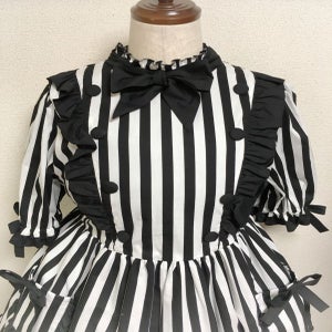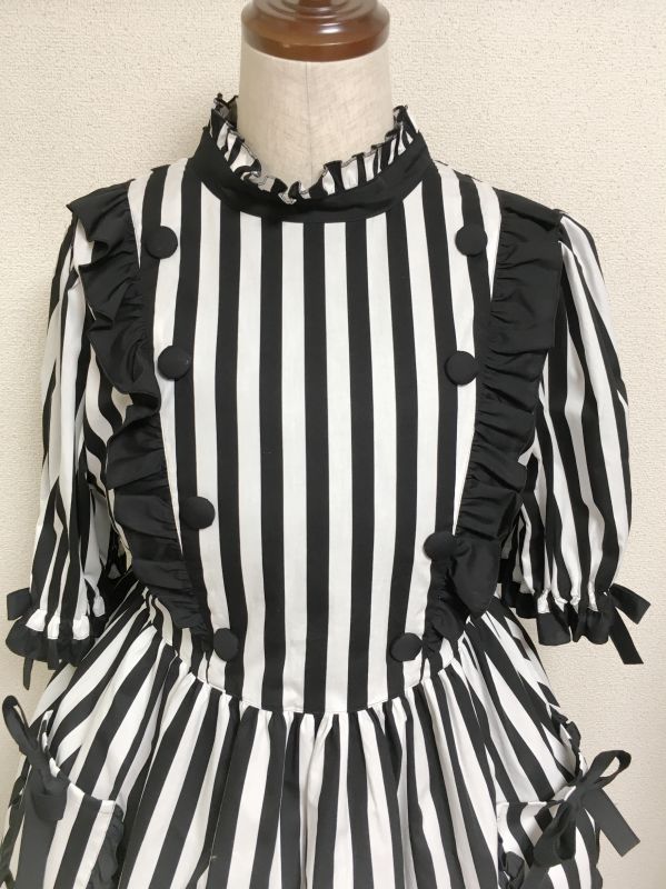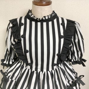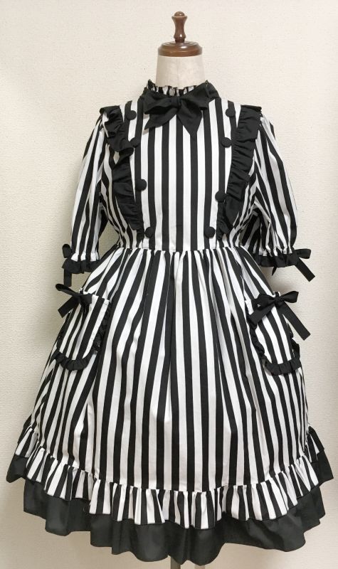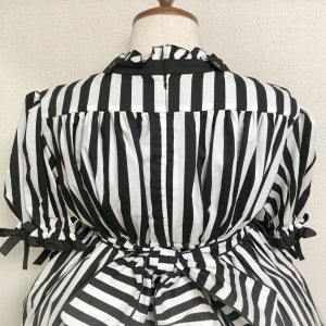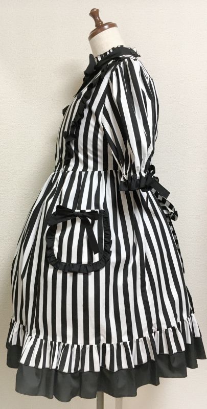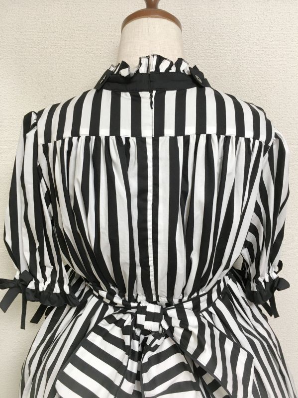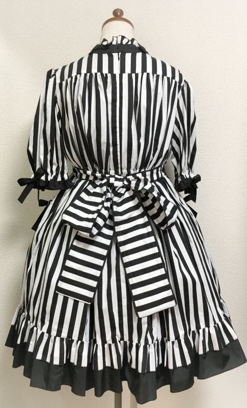 ナース風ワンピース【黒白ストライプ・プラスサイズ】