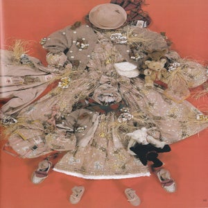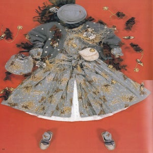 This is the more "delux" OP from this series. It has vertical pintucks with ruffles and a very full skirt.