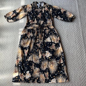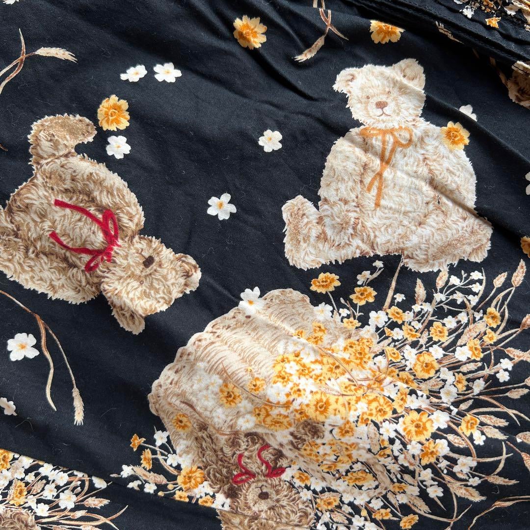Print of Teddy Bears and bouquets of what looks like wheat inside of a basket.