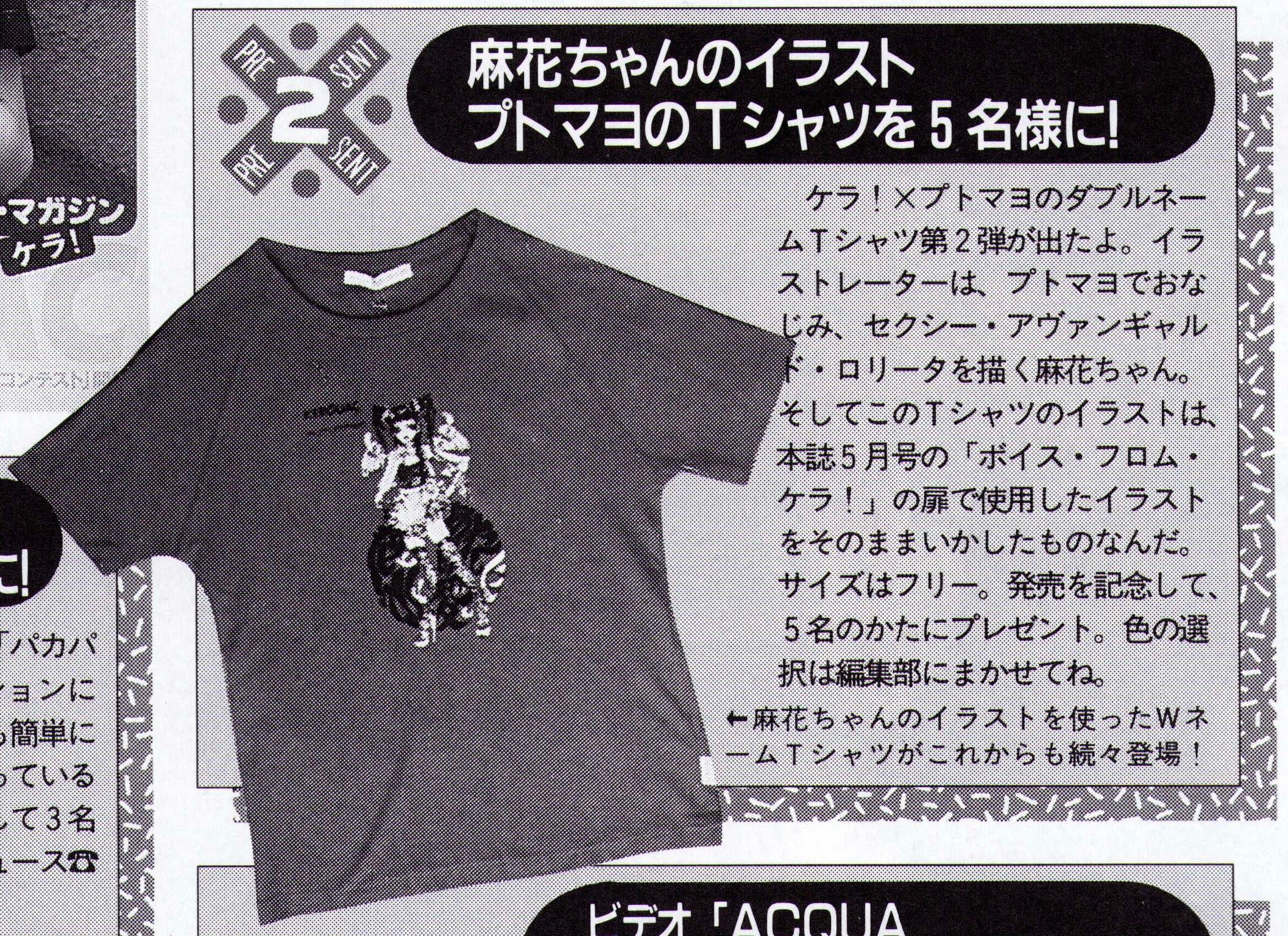 The second Kera! x Putumayo double-named T-shirt has been released. The illustrator is Asaka, who is well known for her sexy avant-garde lolita drawings in Putumayo. "The illustration on this T-shirt is a direct copy of the illustration used on the cover of "Voice from Kera!" in the May issue of this magazine. It's one size fits all. To commemorate the release, we'll be giving one away to five lucky people. Please leave the choice of color up to the editorial department."