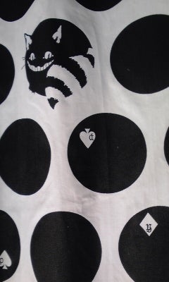 Hidden within the dot pattern are a playing card pattern and the Cheshire Cat. ♪