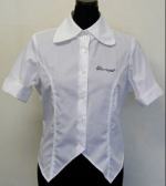 これからの季節に活躍しそうなキュートな丸襟のシンプルなブラウス。短めで大胆なカットの裾がポイント!