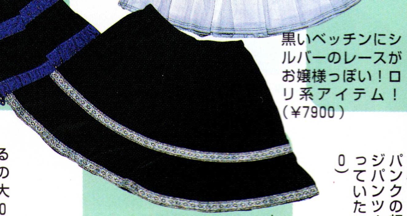 Item description: "The black velveteen and silver lace make for a ladylike look! A lolita-inspired item! (¥7900)"