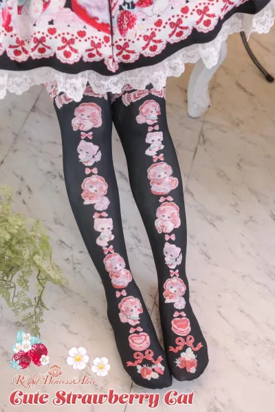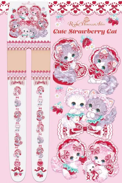 Cute Strawberry Cat 飴ノ森ふみかコラボ・タイツ