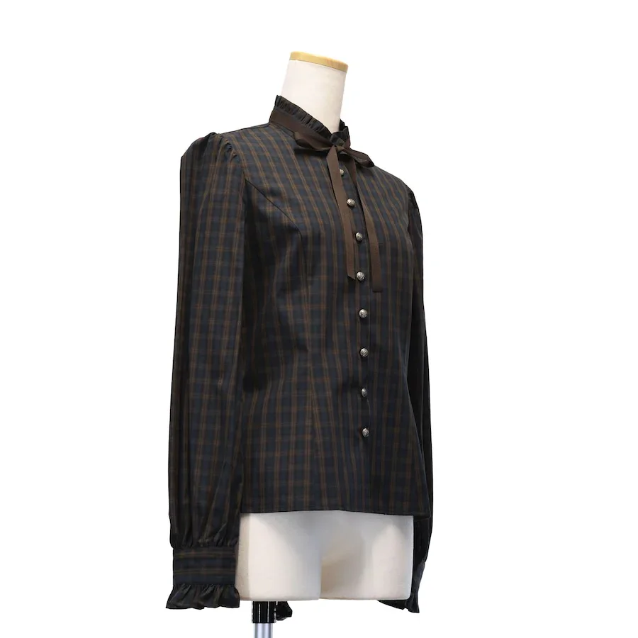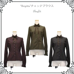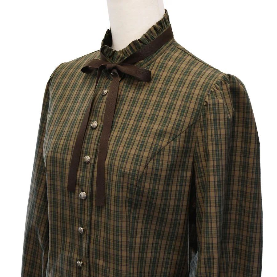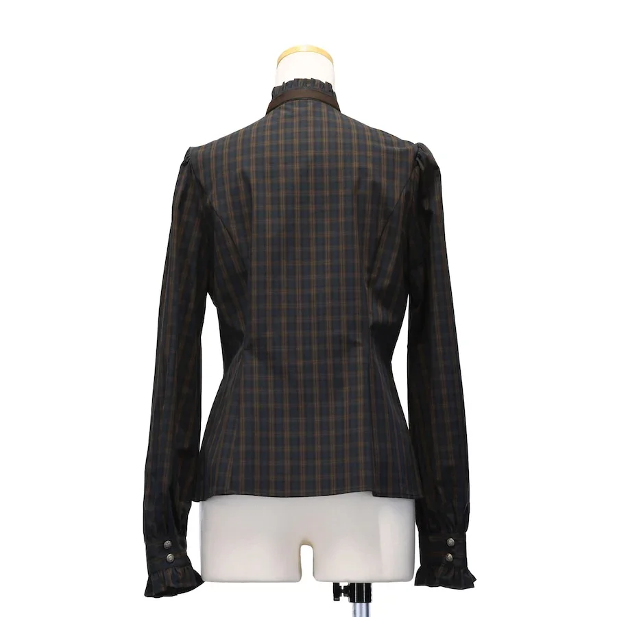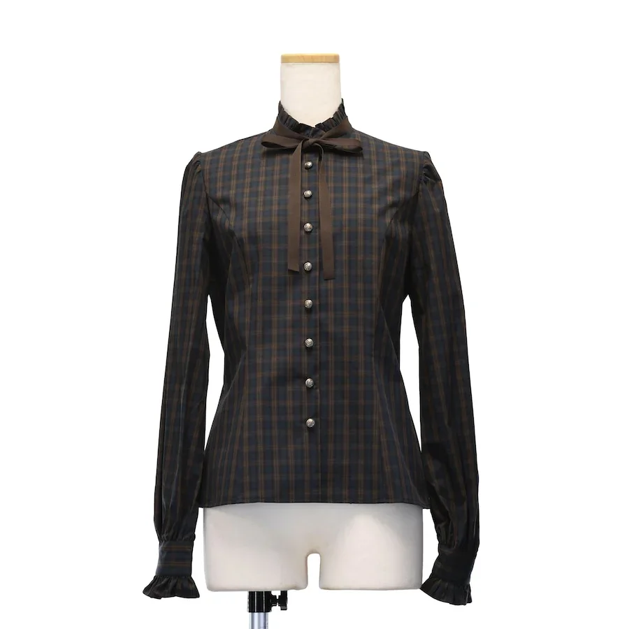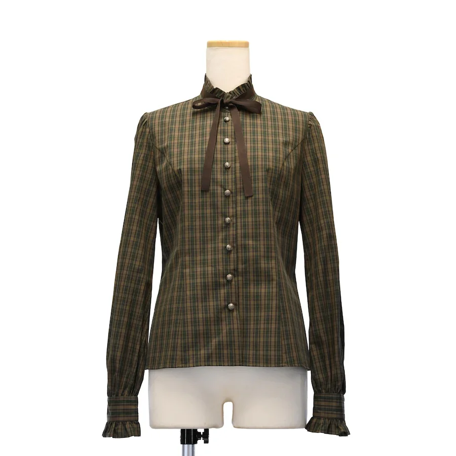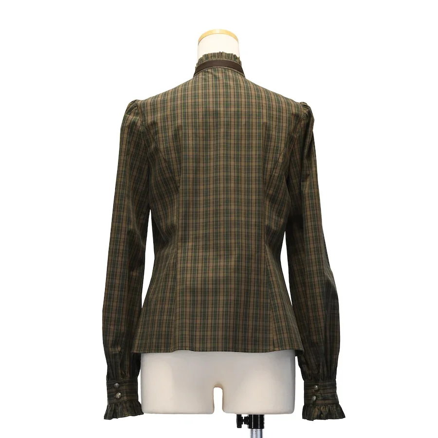 This blouse from the ●Brigitta● series features an appealing check pattern in a subdued color scheme.