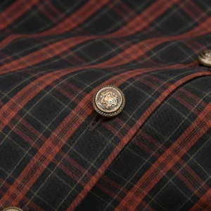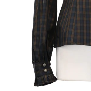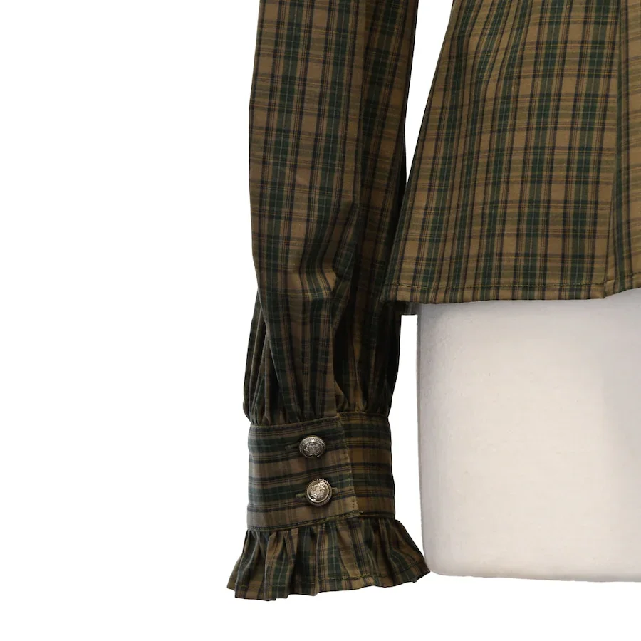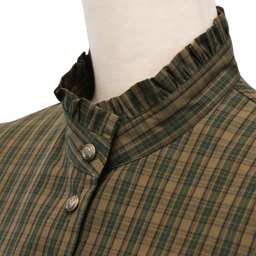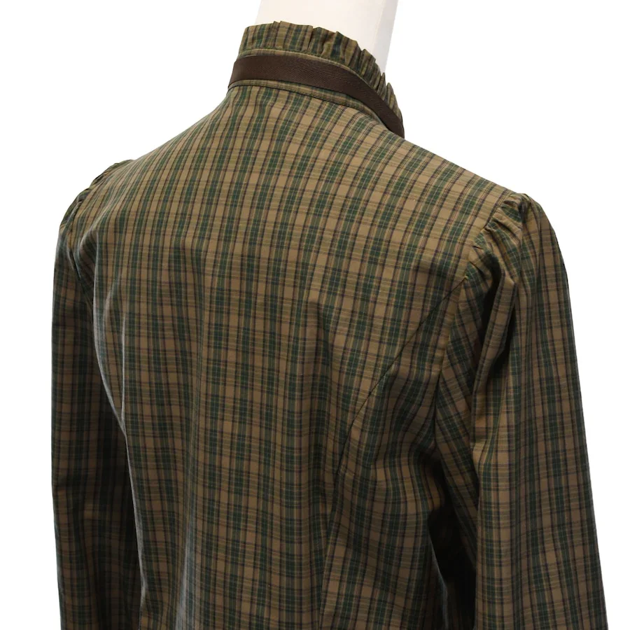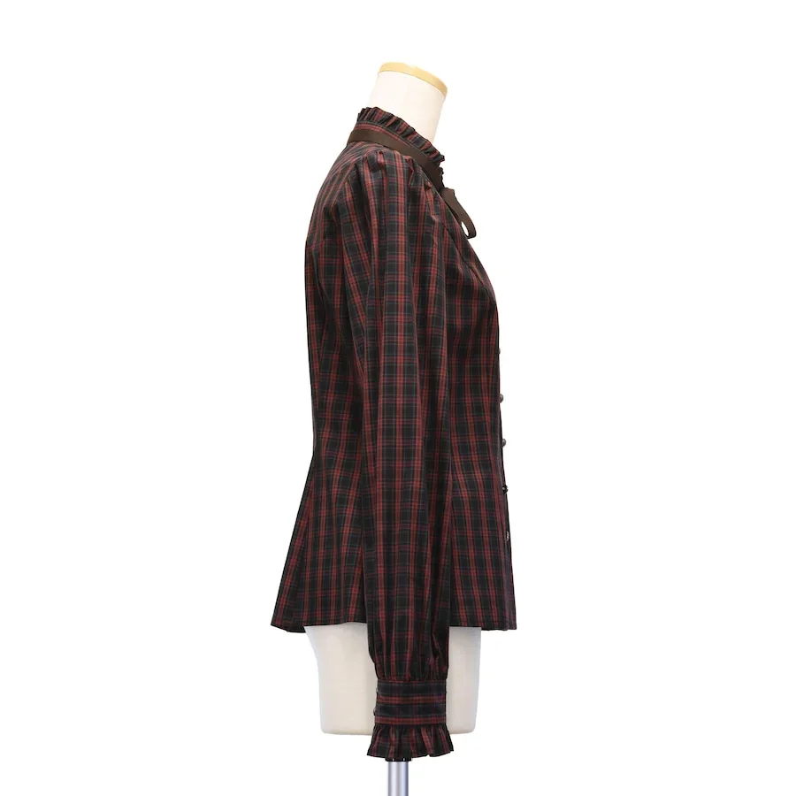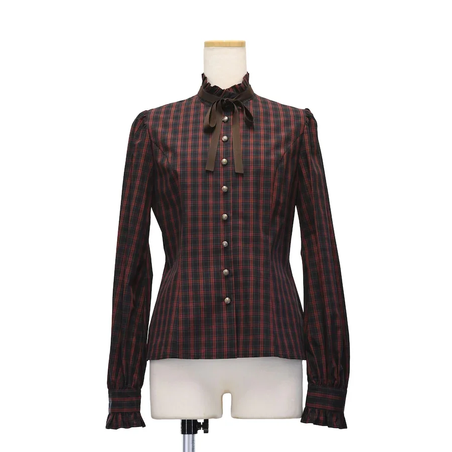 This blouse from the ●Brigitta● series features an appealing check pattern in a subdued color scheme.