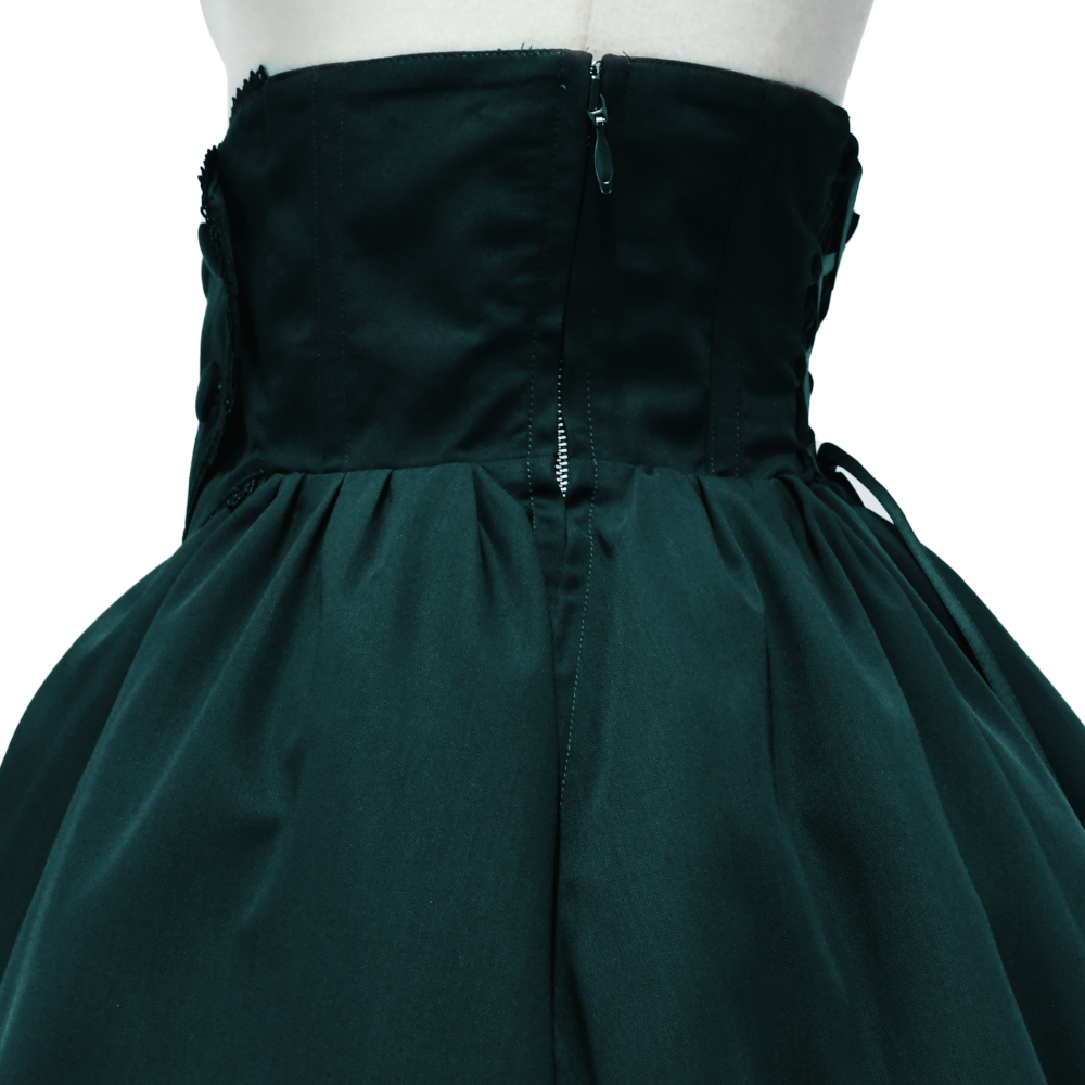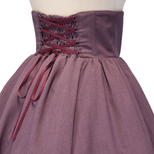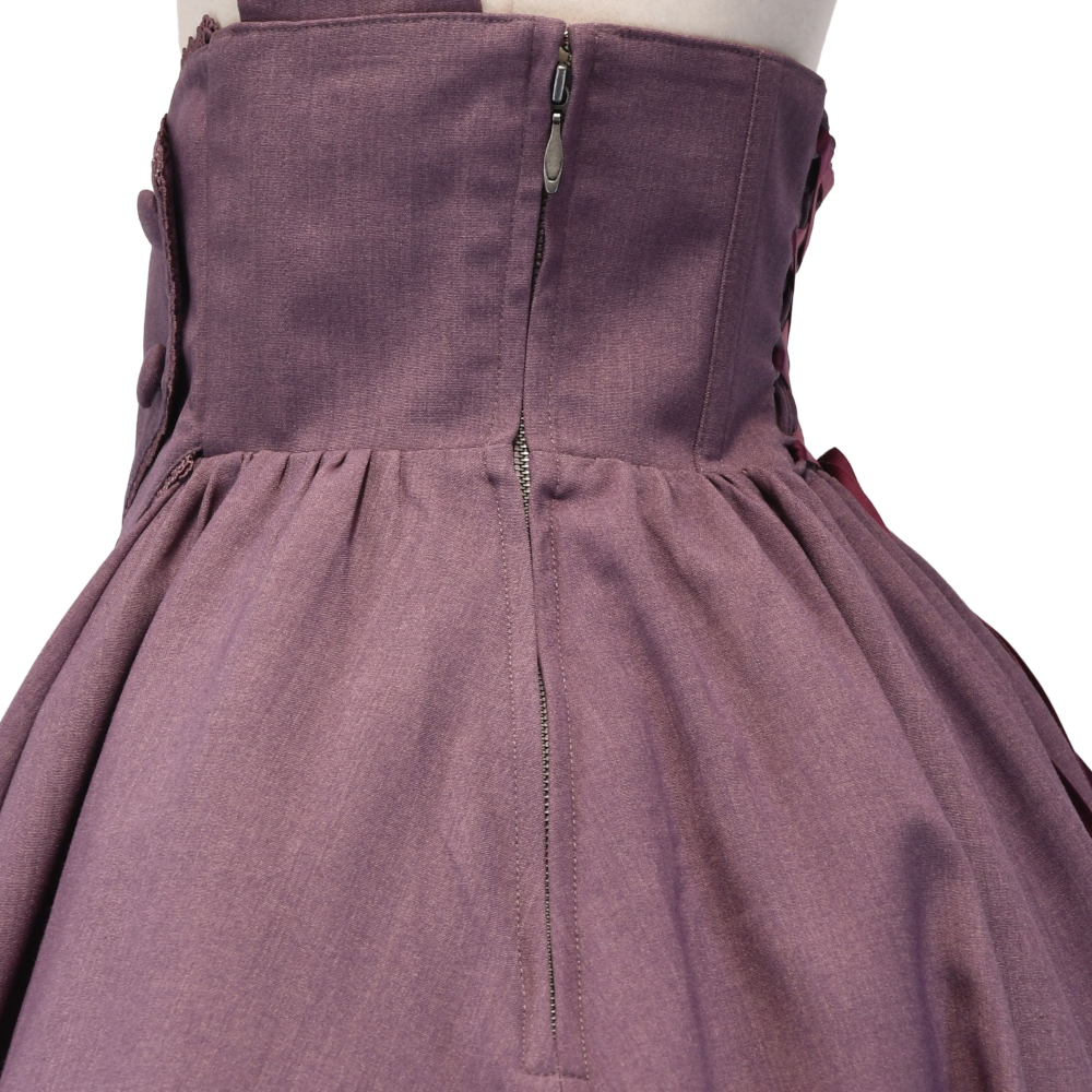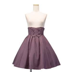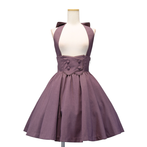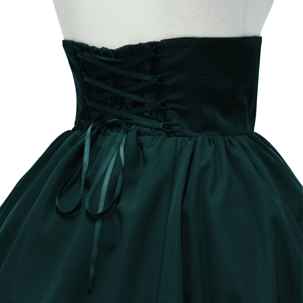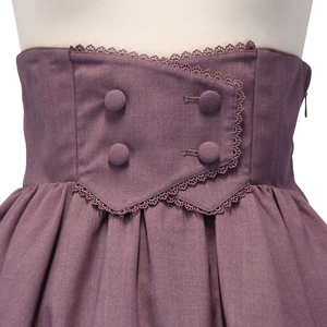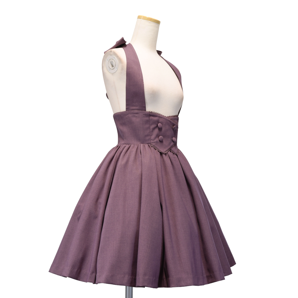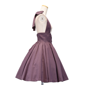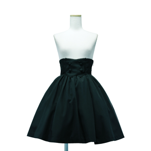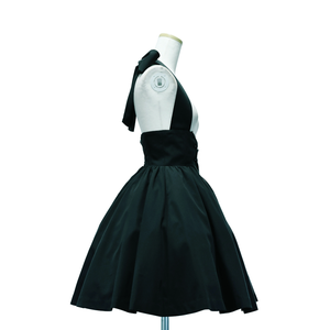The waist features a corset design with two bones on the front and back. The shirred back and lace-up design create a beautifully cinched silhouette. The skirt has built-in ruffles on the inside and delicate gathers for a softly voluminous look. Additionally, the halter ribbon is removable with buttons, allowing for a wide range of coordination options.