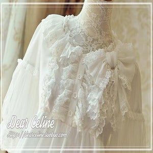 DearCeline皇家巧克力学院梦幻点纱蝴蝶结灯笼袖娃娃款衬衫Lolita
