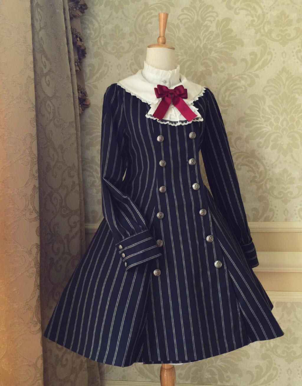 DC 15秋季学院 条纹毛料双排扣风衣/连身裙-两色定金