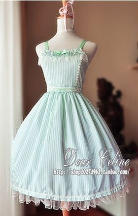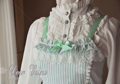 Very lovely simple JSK. There are lots of small details in this dress, however, that make it absolutely gorgeous (detailed lace on the chest, slightly shimmery threads in the white stripes, etc.). Also very breathable and one of the lightest JSKs I've ever owned. Recommended for girls 5'6" and under.